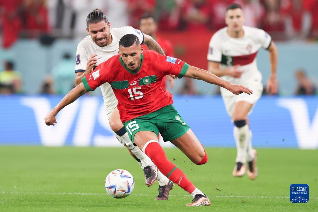 12月10日,摩洛哥队球员阿马拉(前)在比赛中进攻。新华社记者 李钢 摄