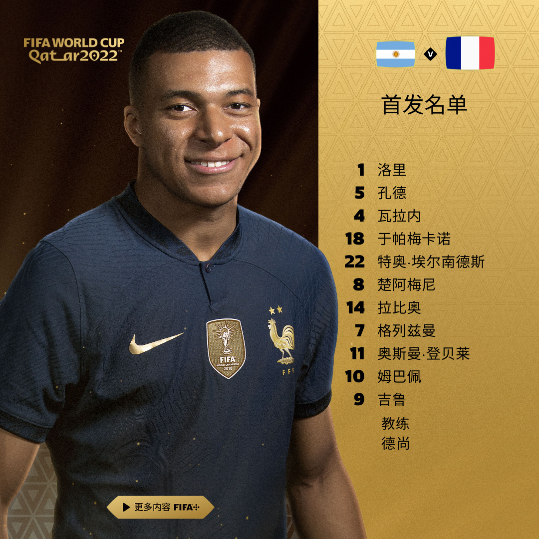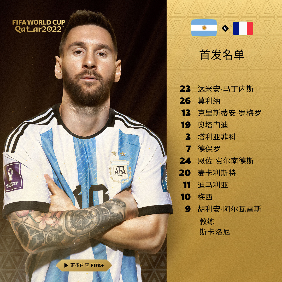 北京时间12月18日晚23时,2022卡塔尔世界杯决赛将上演,阿根廷队和法国将为了大力神杯的荣耀展开终极一战。目前双方首发阵容已经公布。