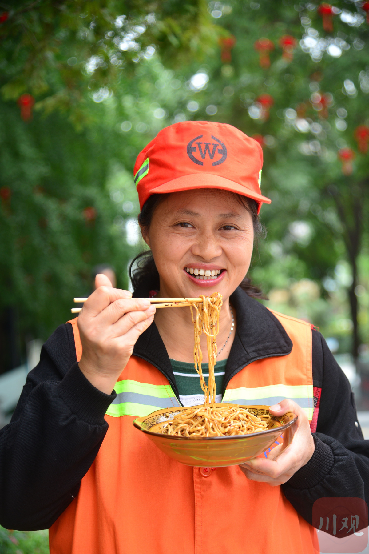 “在这个特别的日子里,能吃上一碗国庆面,心里很温暖”,西郊街道环卫工人廖祖兰和一起吃面的同事们纷纷表示,一定会认真做好本职工作,用干净、整洁的城市环境为祖国母亲送上祝福。从成都返回宜宾过节的徐超,一出车站就端上了一碗热腾腾的燃面,他边吃边开心地告诉记者:“这就是真正的家乡味道!”