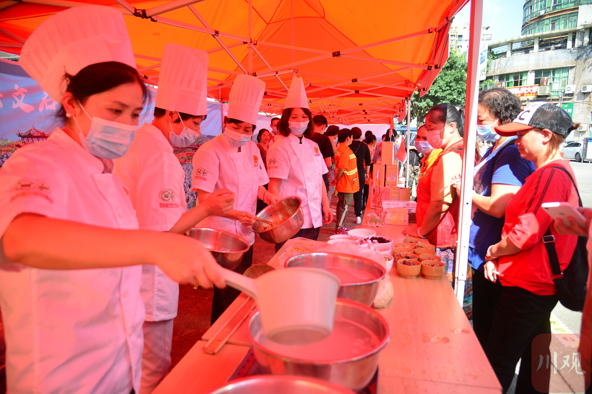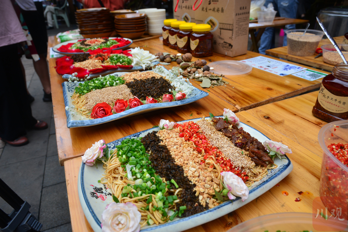 宜宾燃面是我省最具特色的传统名小吃之一,深受各方食客和群众喜爱。活动现场,宜宾燃面传统制作技艺第三代省级非遗传承人曹祉清制作的“大观楼”燃面,更是备受追捧。