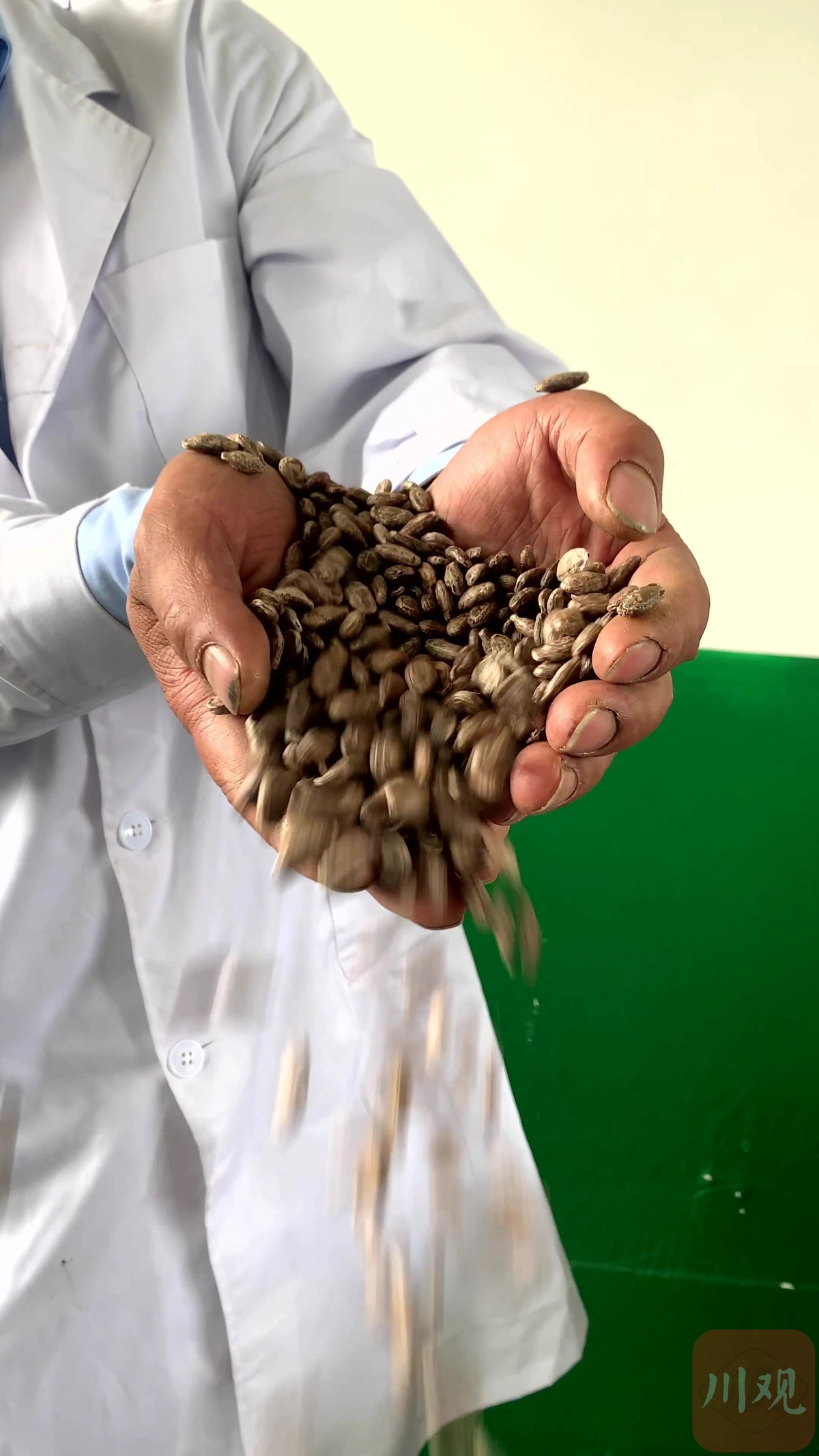 阳光照耀的藤蔓下,传来村民的欢笑。他们用越来越快的速度,将一桶桶的吊瓜采摘装桶,倒进停在路边的农用车里。蜿蜒山路上,农用车徐徐向前,将吊瓜运往生产加工车间……两天后,一辆大货车将10余吨吊瓜子运往西安某坚果批发市场。很快,北上广以及西安、浙江一带的爱好者们,就能在双节的闲暇时光里,瞌着香脆的吊瓜子,恬淡地享受秋日暖阳了。
