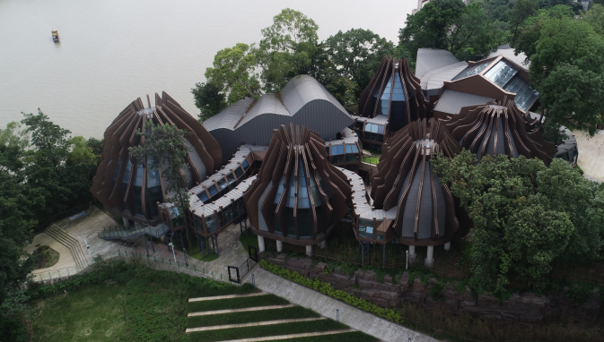 据了解,张大千博物馆占地面积3.2亩,建筑面积2778平方米,是内江市2019年“十大”社会事业惠民工程和国家级AAAA风景区大千园的重点景观。尤其需要注意的是,这座建筑出自西班牙建筑事务所EMBT的手笔。一座远在中国内地的博物馆,为何远隔重洋的西班牙建筑师主持设计?
