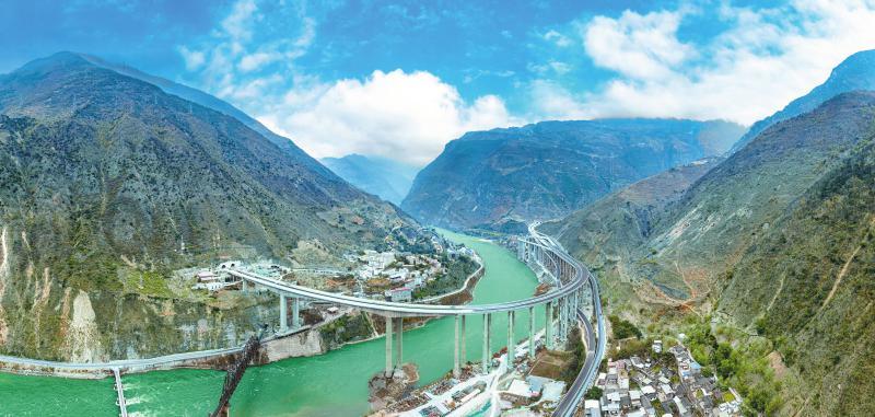 从川南经济区出发,溯金沙江而上,穿越层峰叠嶂、崇山峻岭抵达攀西地区,宜攀(沿江)高速正在艰难的环境中开凿前行。这是目前全国单体投资最大的高速公路项目,也是建设难度大的典型山区高速公路,全线桥隧比80%以上,其中部分路段桥隧比高达90%。