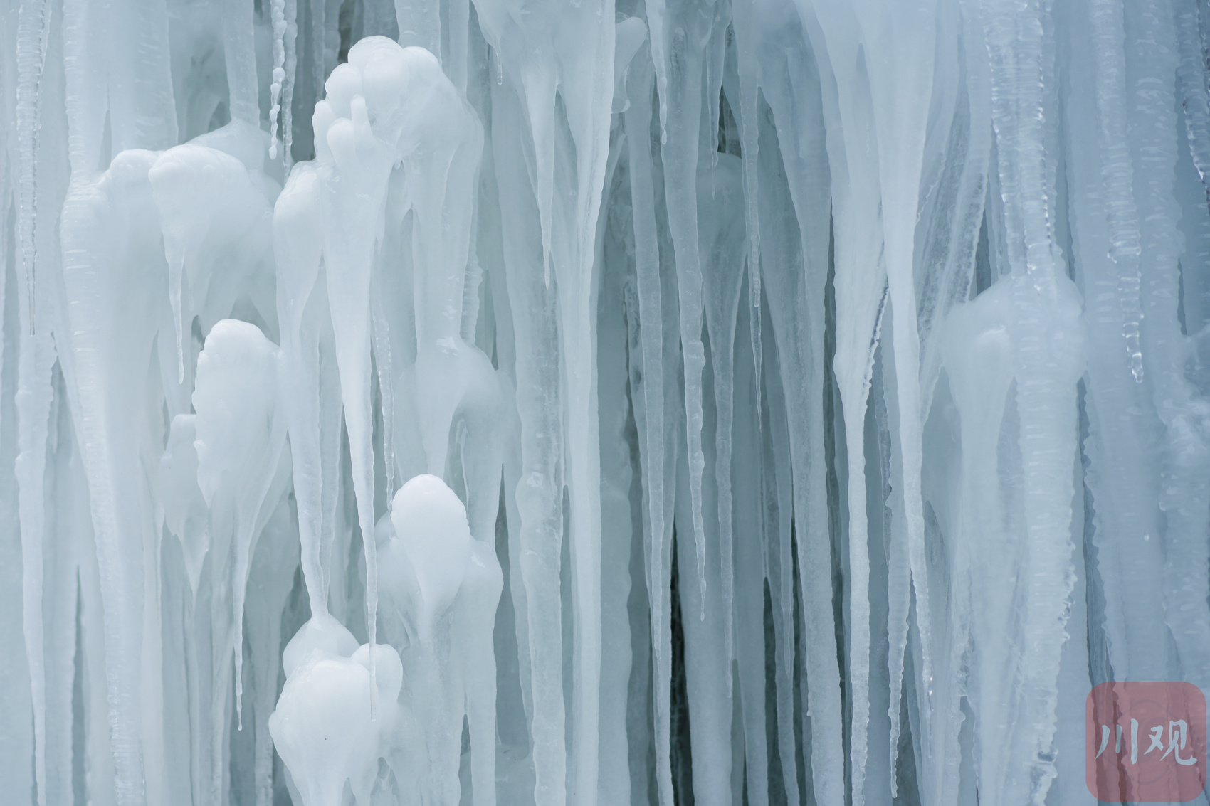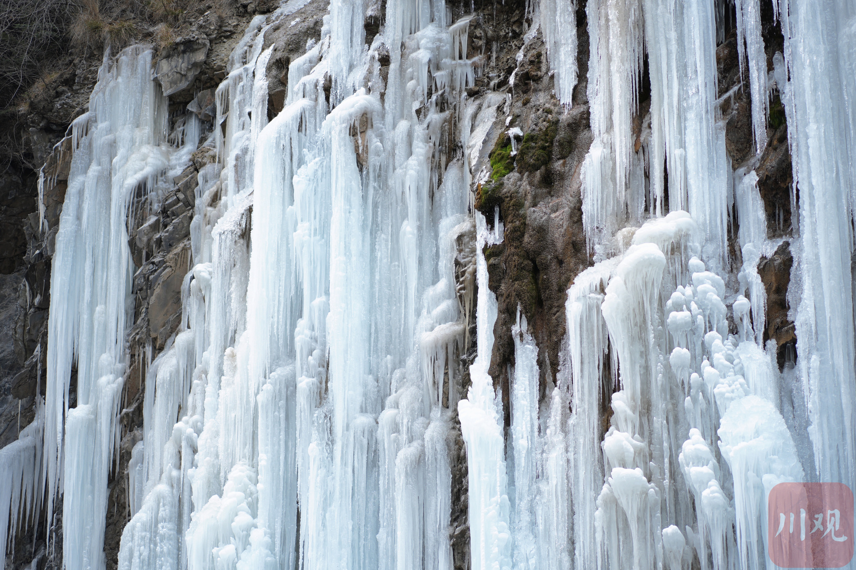 入冬以来,阿坝州气温逐渐降低转寒。在位于马尔康市317国道上的梭磨河大峡谷一侧,往日从山上流下来的小水流凝结成冰瀑,高高悬挂在崖壁之上,犹如洁白的乳石一般,让人感叹大自然的鬼斧神工。