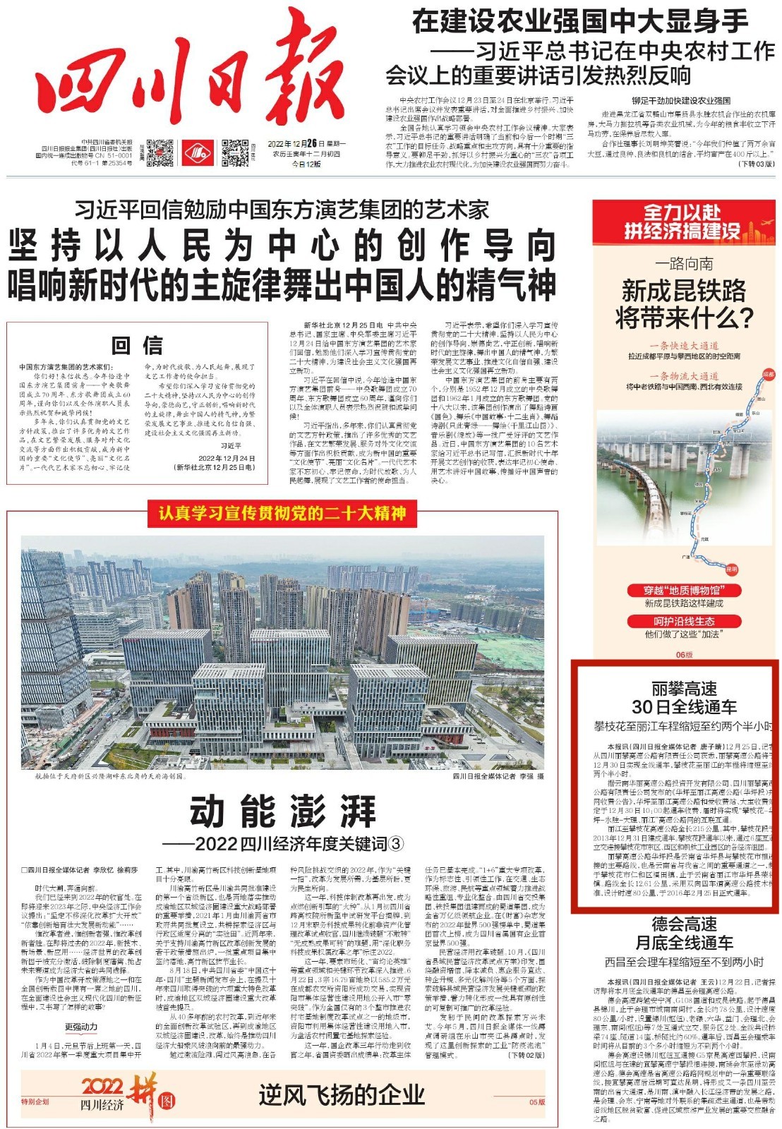 12月25日,记者从四川丽攀高速公路有限责任公司获悉,丽攀高速公路将于12月30日实现全线通车,攀枝花至丽江的车程将缩短至约两个半小时。