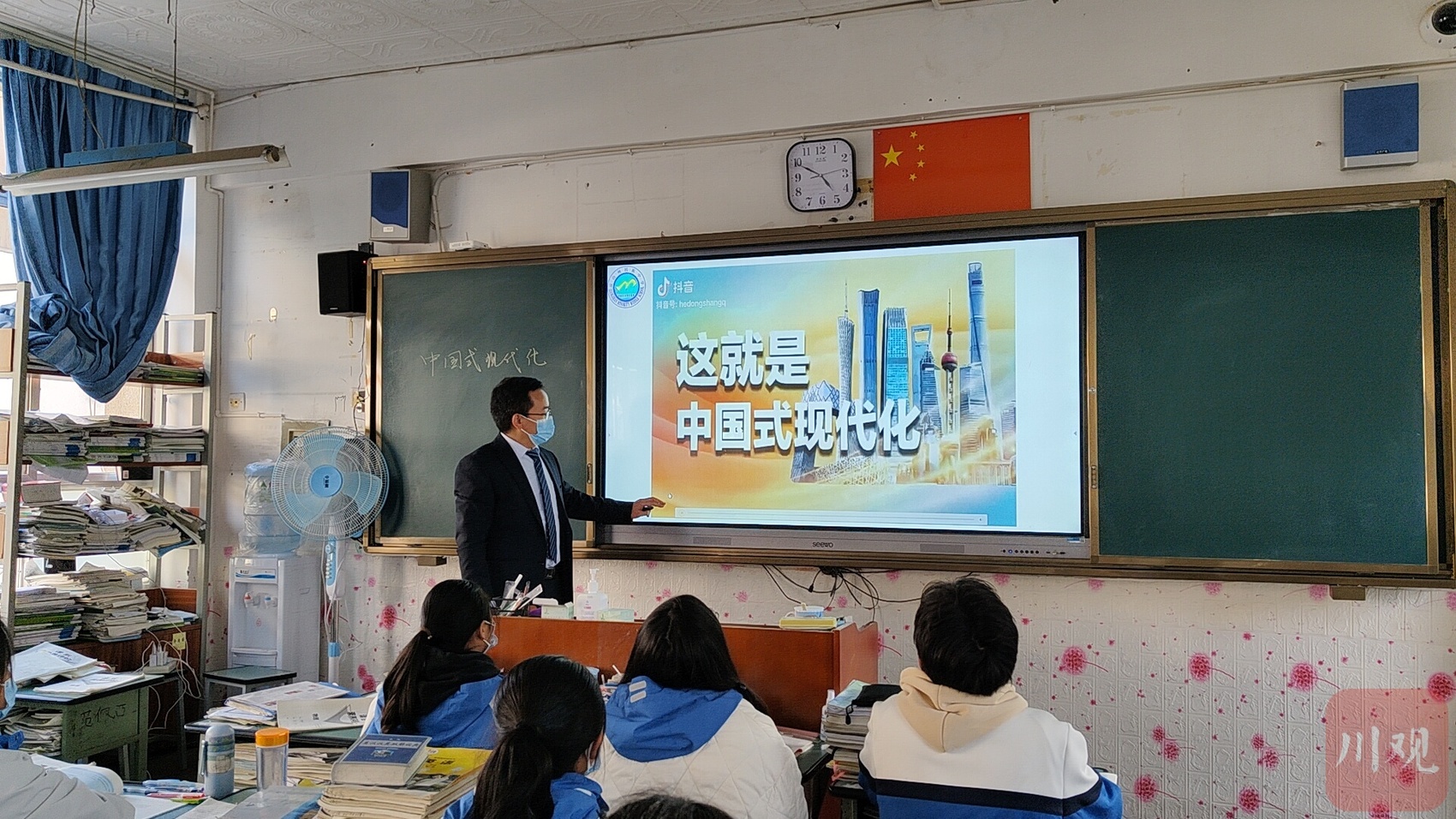 “中国式现代化是物质文明和精神文明相协调的现代化。”12月19日,凉山州民族中学高一(五)班教室,政治老师吉俄布合正带着学生们学习。老师讲得投入,学生们听得仔细,一堂课下来,吉俄布合额头上已微微冒汗。