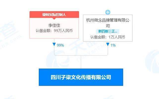 天眼查App显示,近日,四川子柒文化传播有限公司发生多项工商变更:监事由刘同明变更为蒲倩云;杭州微念品牌管理有限公司持股比例由51%减至1%,李子柒(李佳佳)持股比例由49%增至99%。目前,李子柒为该公司疑似实际控制人。