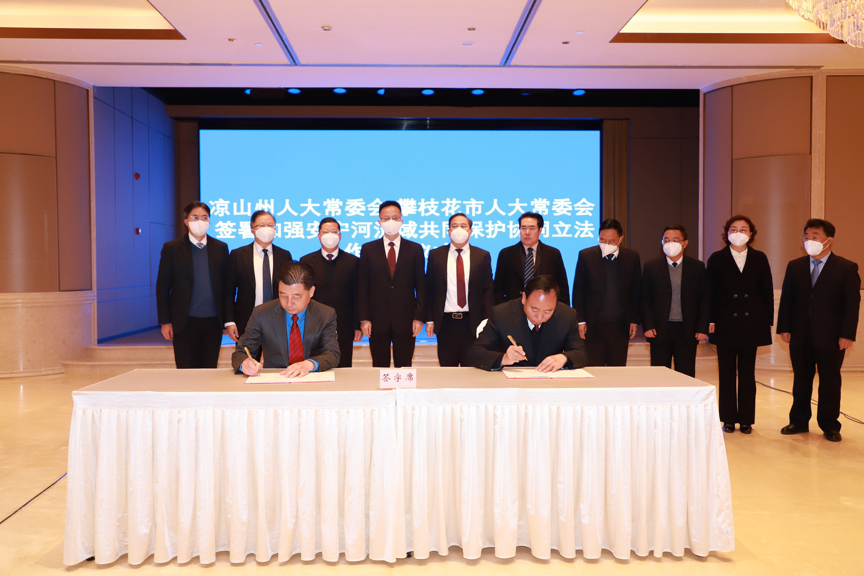 12月28日,攀枝花市人大常委会与凉山州人大常委会签署加强安宁河流域共同保护协同立法合作协议仪式在凉山州西昌市举行,深入落实省委省政府关于安宁河流域高质量发展的决策部署,这是全省市州层面首次开展流域协同立法工作。