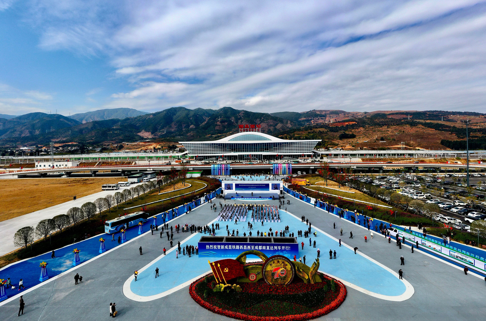 全线通车运营,西昌西站“火”起来了。站前广场,新成昆铁路西昌至成都南直达列车开行仪式上的民族特色舞蹈引得旅客驻足观看。