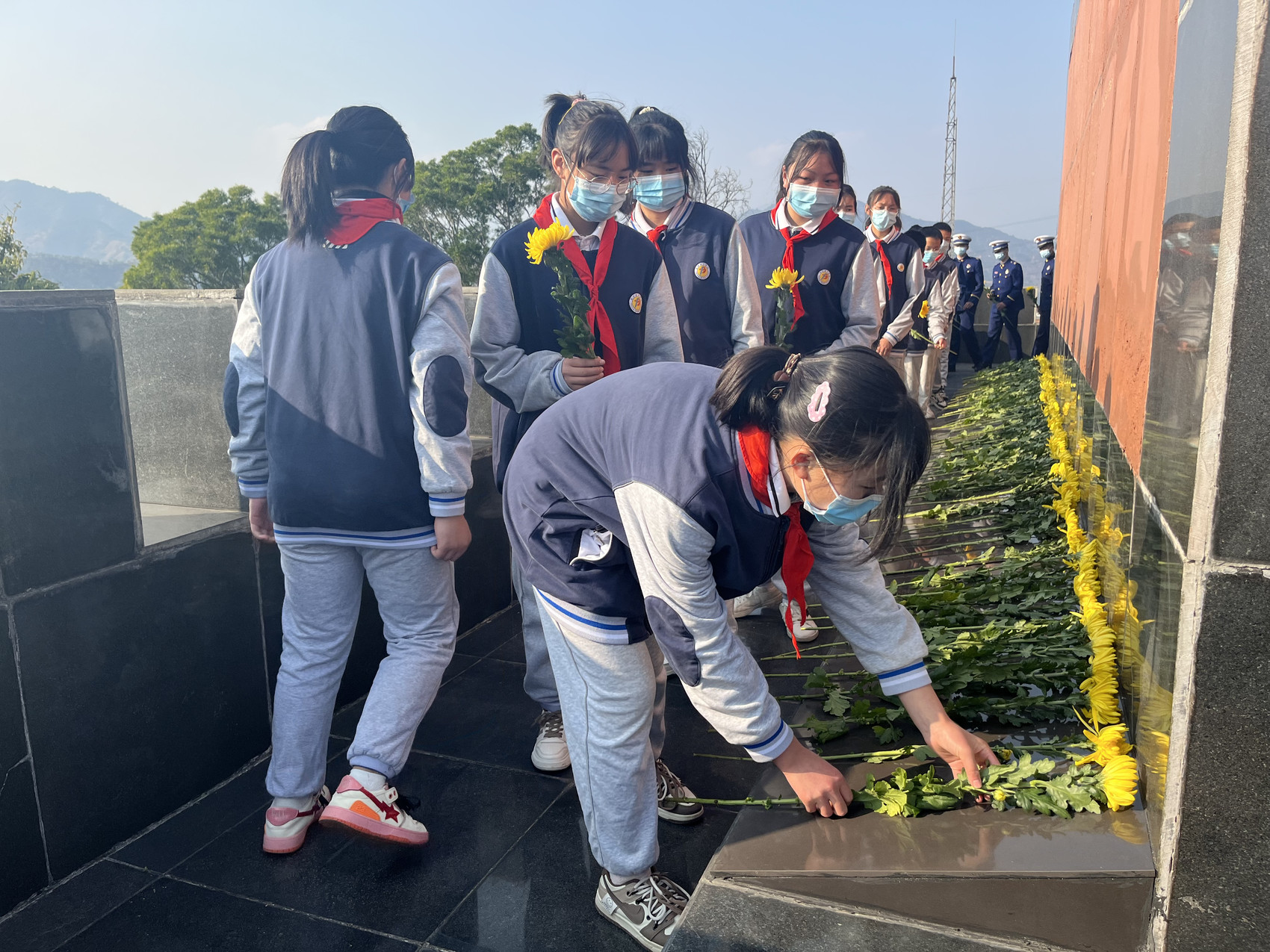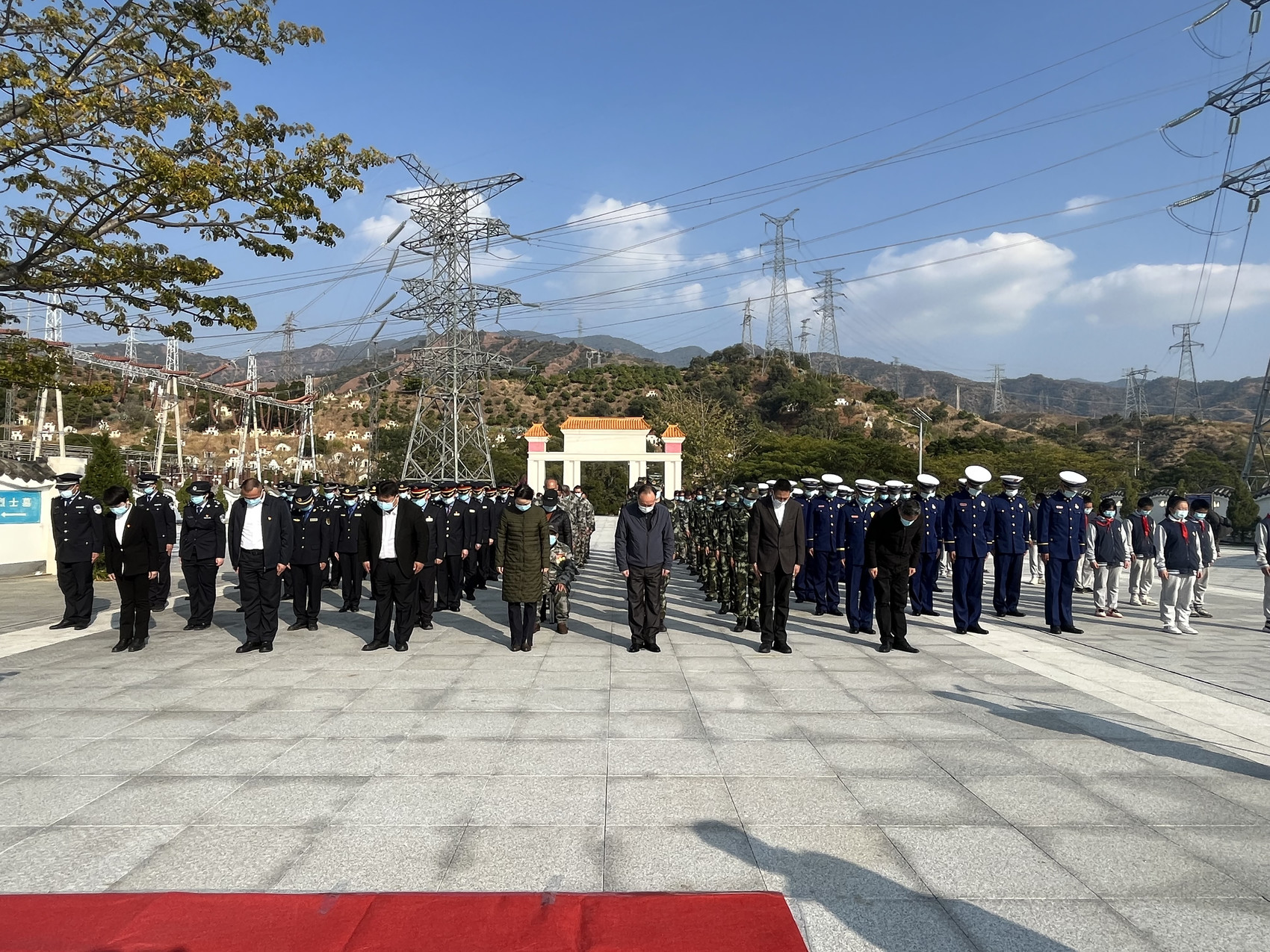 下午四点,缅怀仪式开始,全体人员向烈士默哀致敬,随后,伴随着《献花曲》深情的旋律,现场各界代表有序行至纪念碑前肃立,逐一敬献鲜花,那一个个深深的鞠躬、一次次深情的凝视,凝结着大家对烈士的无限追思和深切崇敬。