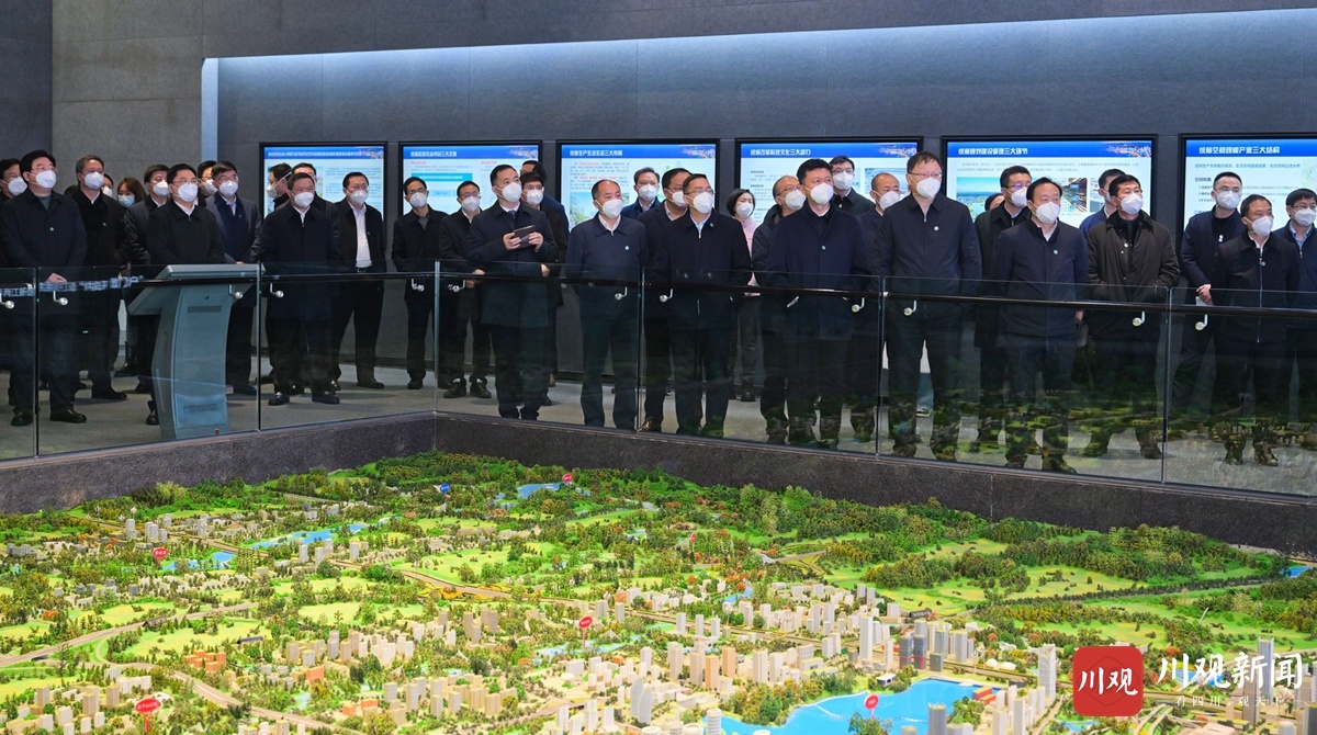 12月30日,推动成渝地区双城经济圈建设重庆四川党政联席会议第六次会议在成都召开。上午,重庆市党政代表团前往天府新区规划厅、中科院成都分院科学城园区天府兴隆湖实验室、成都天府国际生物城、成都威斯克生物医药有限公司,考察了解天府新区规划建设、科研技术创新、生物产业建圈强链、医药产业发展等情况。