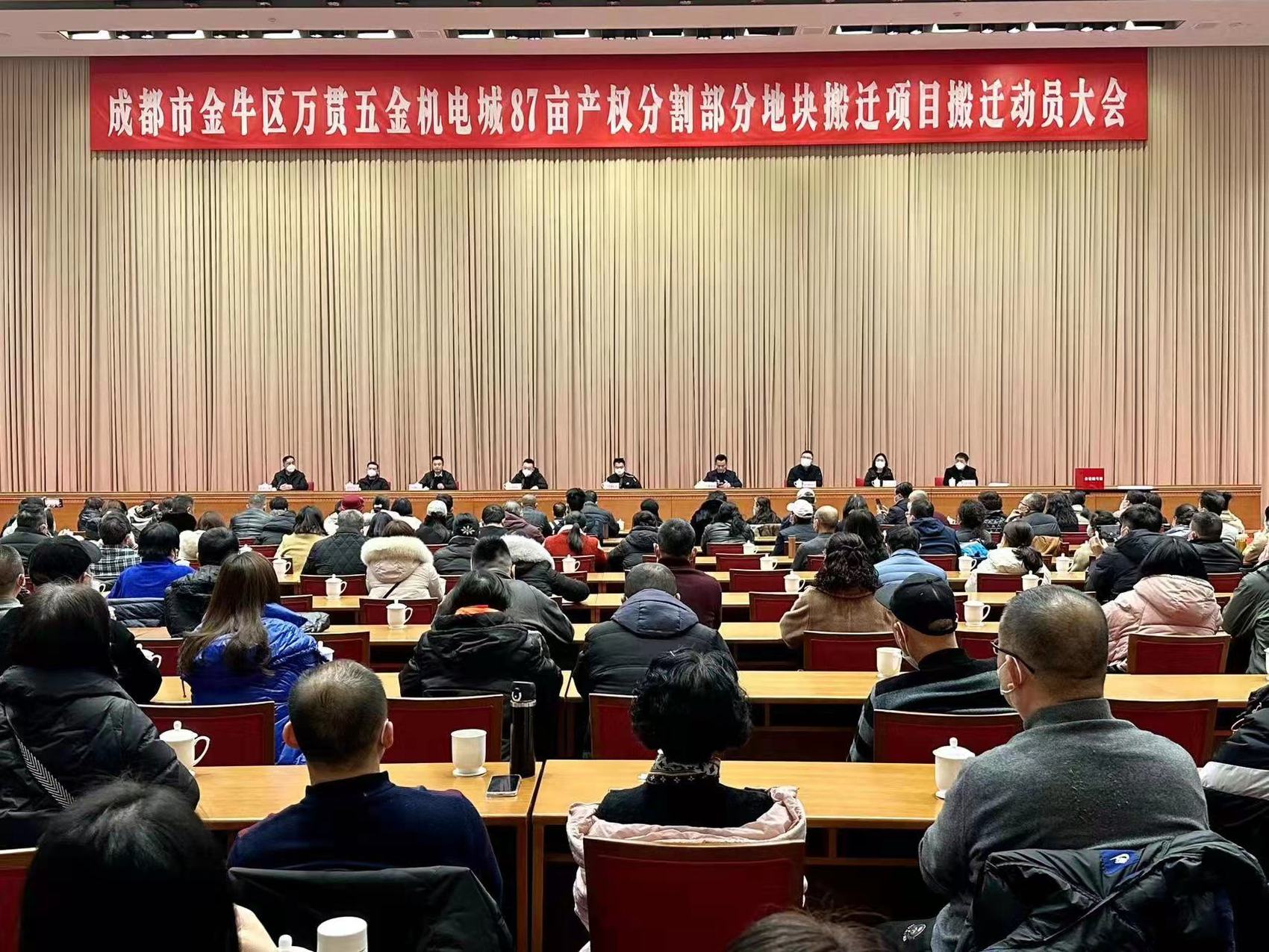 12月29日,成都市金牛区万贯五金机电城87亩产权分割部分地块搬迁项目搬迁动员大会召开。