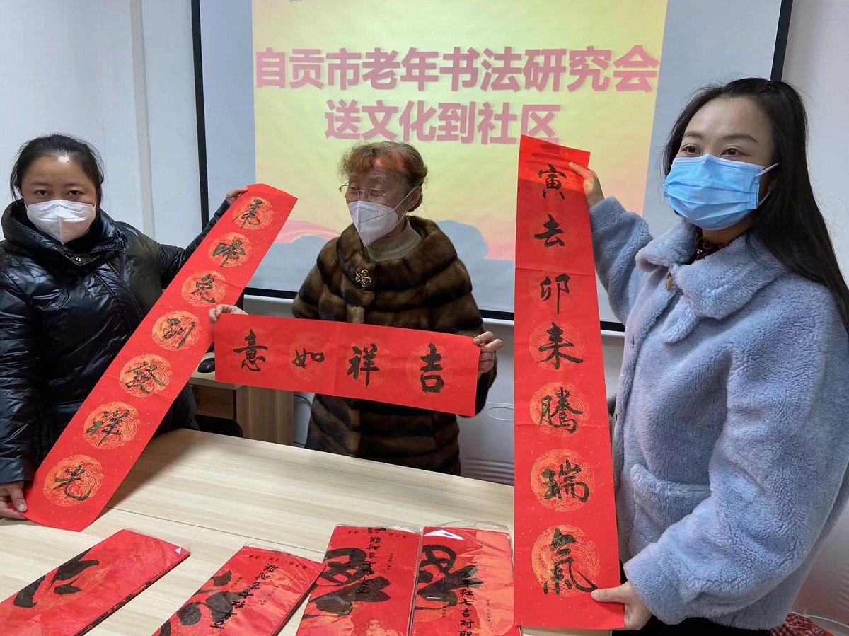 12月28日,自贡市老年书画研究会与自流井区新街龙凤山社区联合开展 “送文化到社区”活动。提前为社区居民送上新年的祝福,在传承中华民族优秀传统文化中丰富社区居民群众文化生活。
