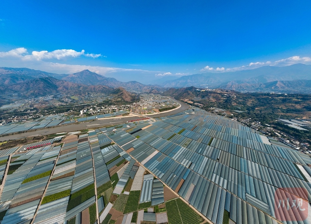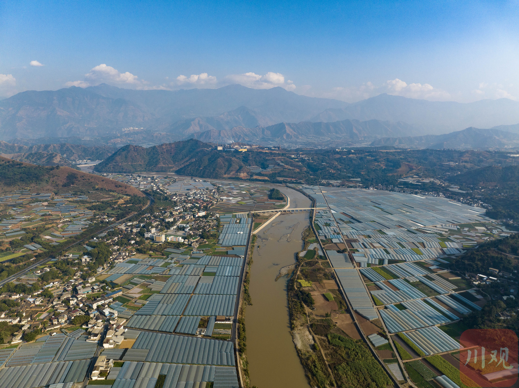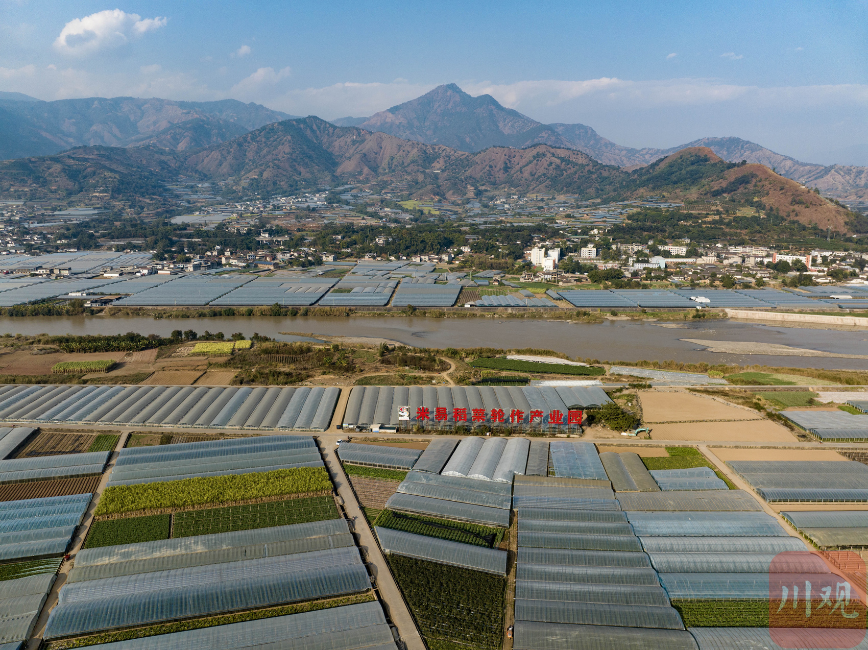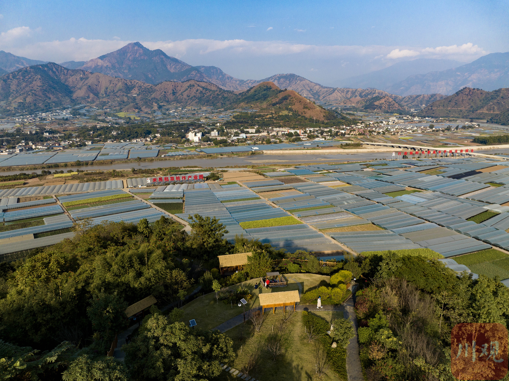 航拍安宁河畔的米易县10万亩稻菜轮作基地核心区