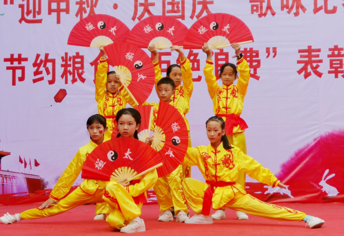 活动中,该校学生通过表演“太极刀、太极剑、太极扇”等优秀传统文化艺术节目,展示了传承传统文化的丰硕成果,为双节同至献上了一份传统文化盛宴;并演唱了《祖国的花朵》《我爱北京天安门》《我的祖国》《没有共产党,就没有新中国》等歌曲,唱出中国人的骄傲、自豪和少年儿童的中国心,表达对祖国母亲最真挚的爱。