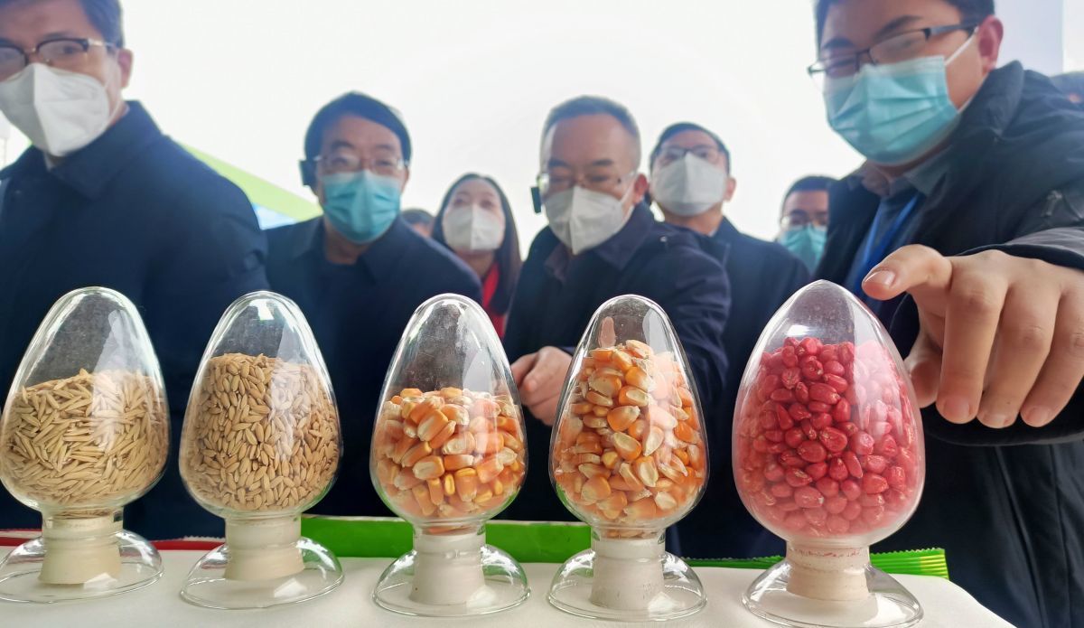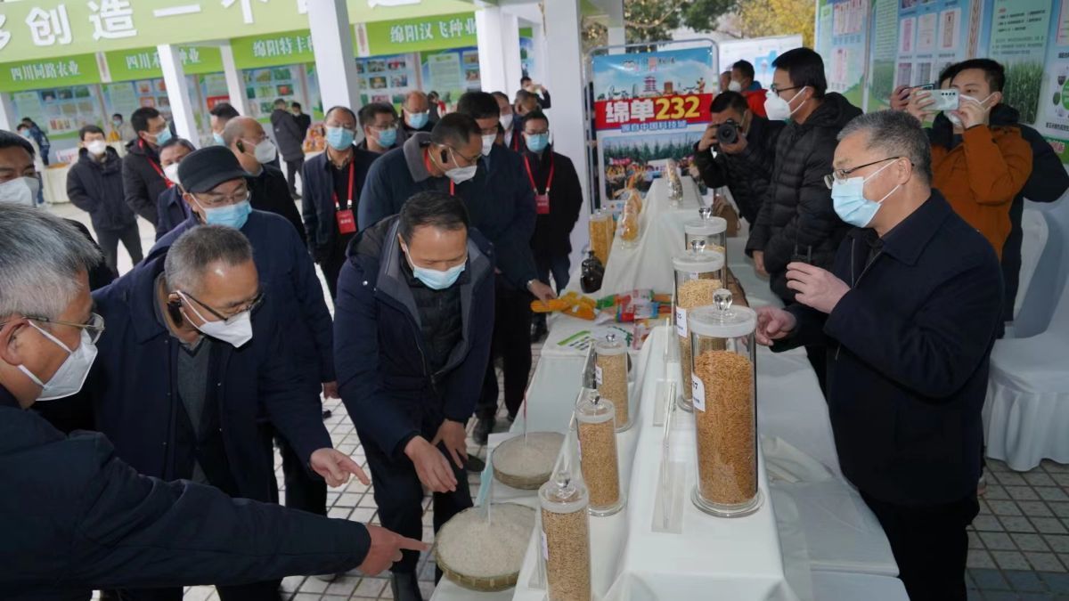 在绵阳市农科院门前,由24家单位带来的水稻、小麦、油菜、玉米、蔬菜、薯类、水产、畜禽等十余个品类、550多个优新特色品种集中亮相,宛若种子的“大观园”,吸引了与会嘉宾的目光。