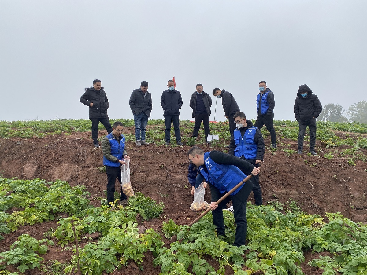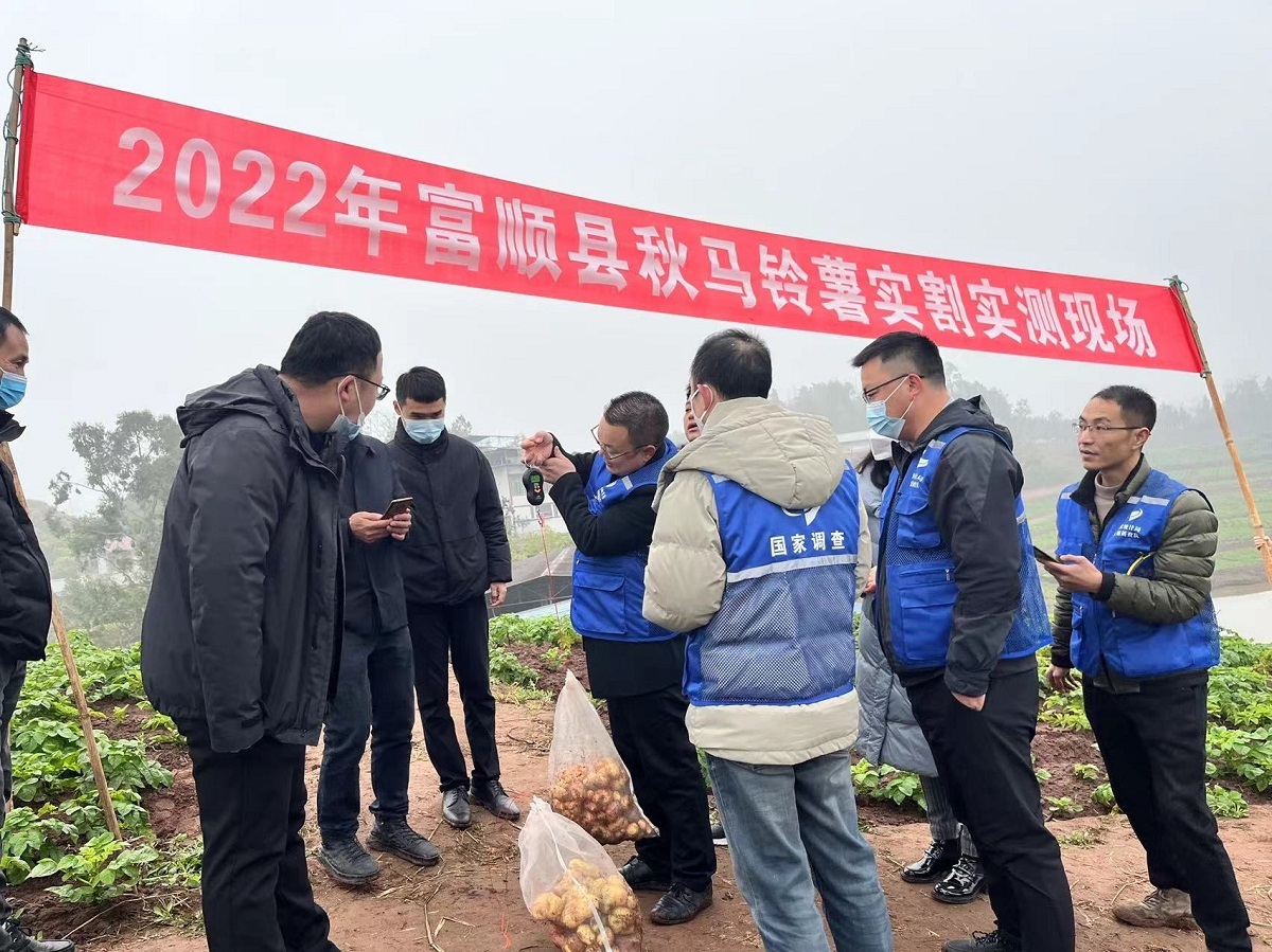 12月30日,国家统计局自贡市调查队、富顺调查队的统计员们,在富顺县农业农村局相关工作人员的陪同下来到该县童寺镇东禅村集体经济马铃薯试验示范基地开展2022年秋马铃薯实割实测。