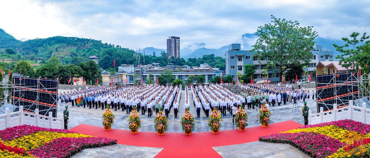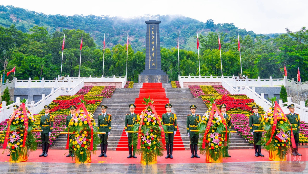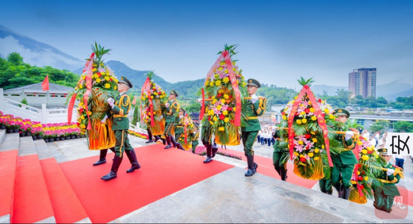 1000余名驻攀部队官兵、烈属、战斗英雄、老战士、劳动模范、学校师生以及社会各界干部群众代表一起,排着整齐的队列面向纪念碑庄严肃立。