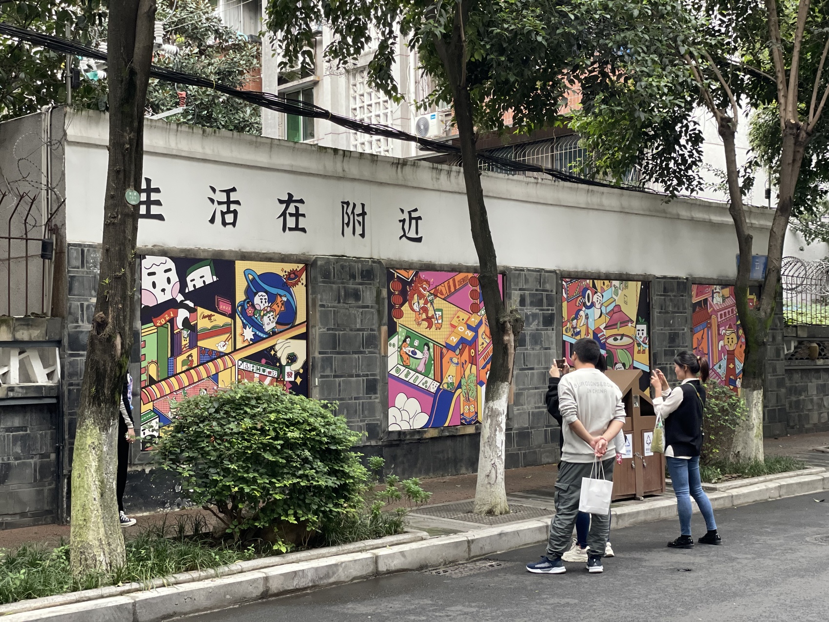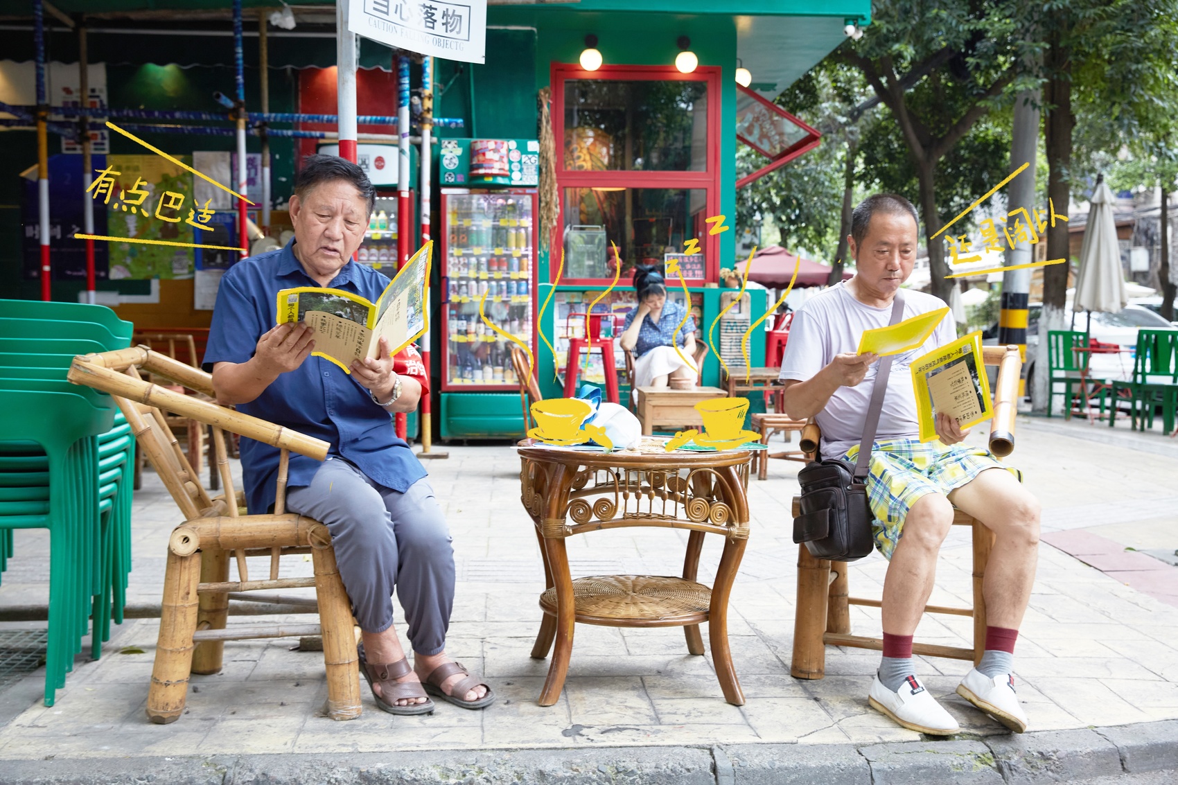 “撑展”,是“90后”祝贺给自己团队起的名字。在四川话里,与“撑展”谐音的意思是说做人做事呈现得“漂亮”“舒服”“平整”。2022年11月的每个周五,这群“家门口的撑展青年”,都在成都高新区芳草街街道的蓓蕾社区,帮助远离儿女的老人们使用电子产品、数码产品。不远处的墙上,是这群年轻人做的《街边日报》,他们引用了著名作家米兰·昆德拉的《生活在别处》为题,路过的行人阅读这份文创产品,会发现只属于这个社区的原创故事和观察笔记。