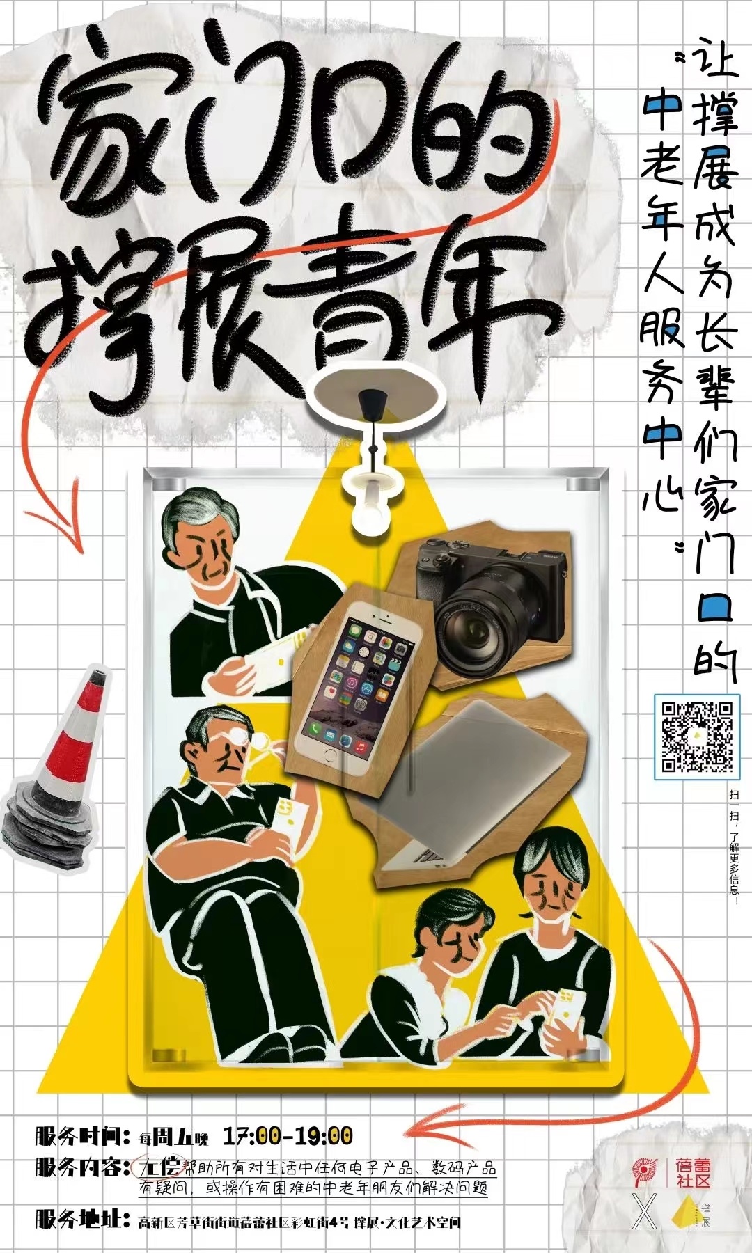 这个推开“玻璃门”的瞬间,对“撑展”团队有点“决定性瞬间”的意味,因为在此之后,老社区的烟火气和年轻人的思考,城市在地化更新与老社区改造,展开了一系列有意思的碰撞。