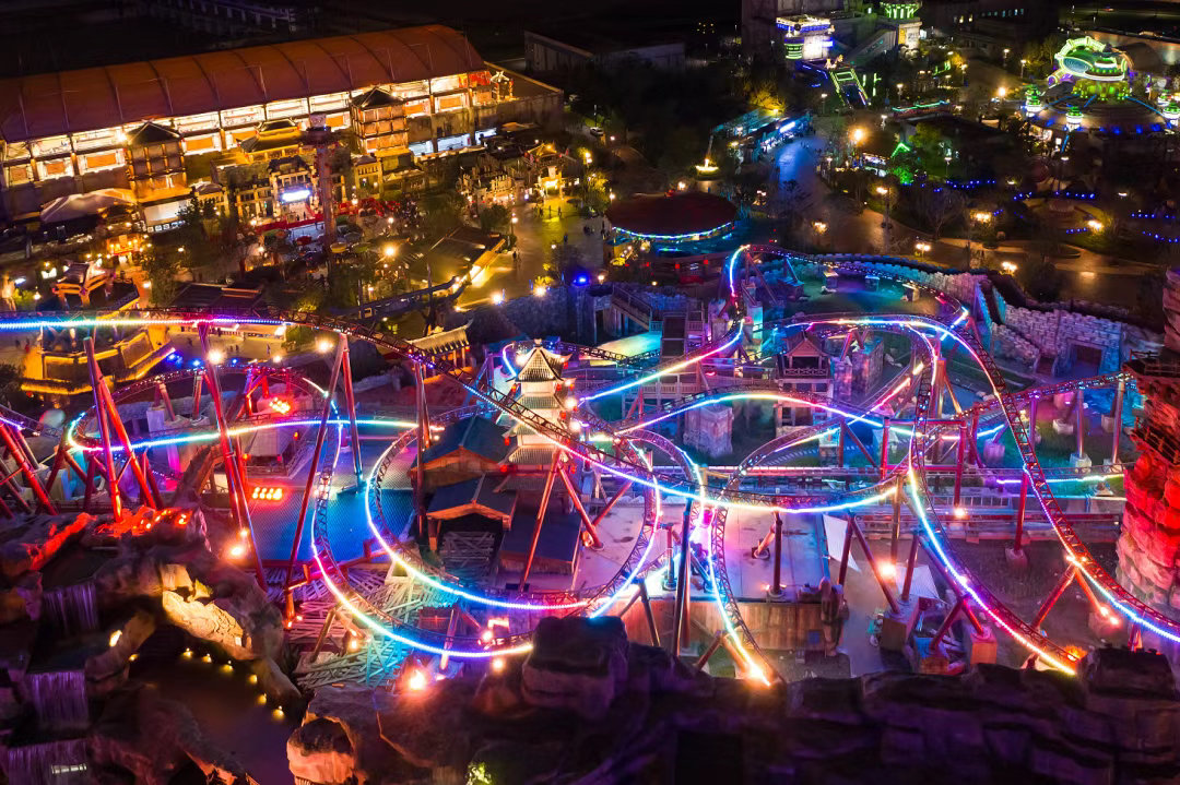 光影节期间,成都融创乐园30余项炫彩游乐设施将日夜开放,过山车、飞行影院、海盗船、大摆锤、时光木马、家庭娱乐中心等设备可一票畅玩。