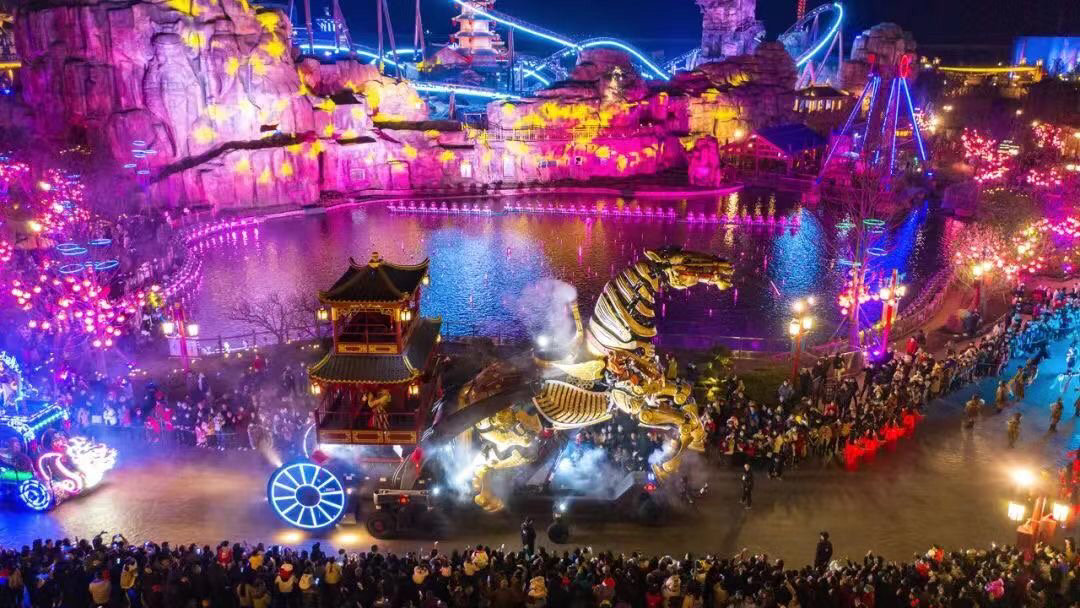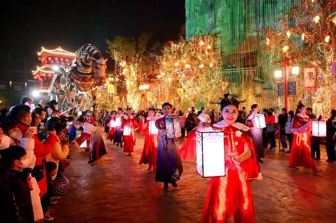 除了绚丽灯组外,成都融创乐园在本届光影节期间将举行全天候演艺活动。全新“梦回古宴”系列演出惊艳来袭,10只巨型梦奇人偶带来破次元的欢乐与激情,冰舞剧场《爱丽丝梦游仙境》、大湖秀《幻梦太阳神鸟》开启奇幻之旅,巨马凯旋花火巡游、篝火晚会、飞火流星、儿童剧等精彩节目也将轮番登场。