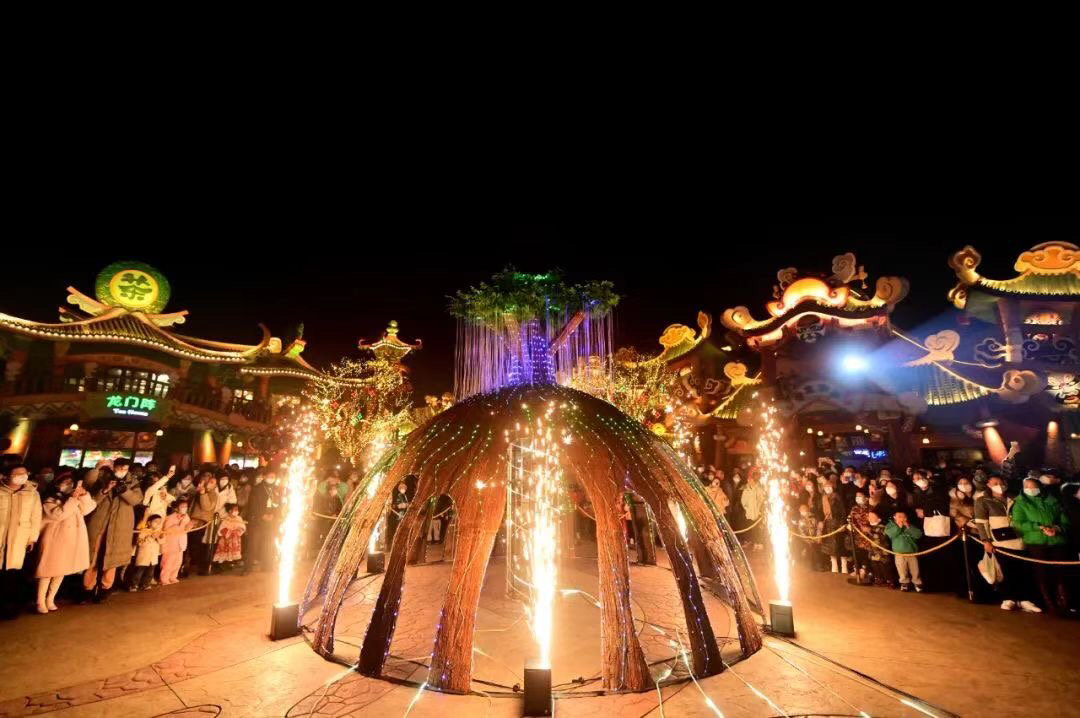 2022年12月31日晚,成都融创乐园火树银花,50万平方米的璀璨灯海同步亮灯,首届成都天府熊猫光影节(简称“光影节”)正式开幕。
