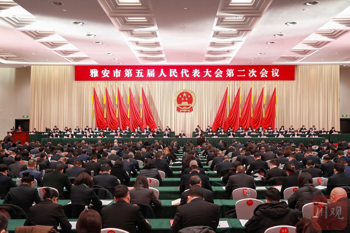 1月3日上午,雅安市第五届人民代表大会第二次会议开幕,雅安市市长彭映梅作《政府工作报告》。