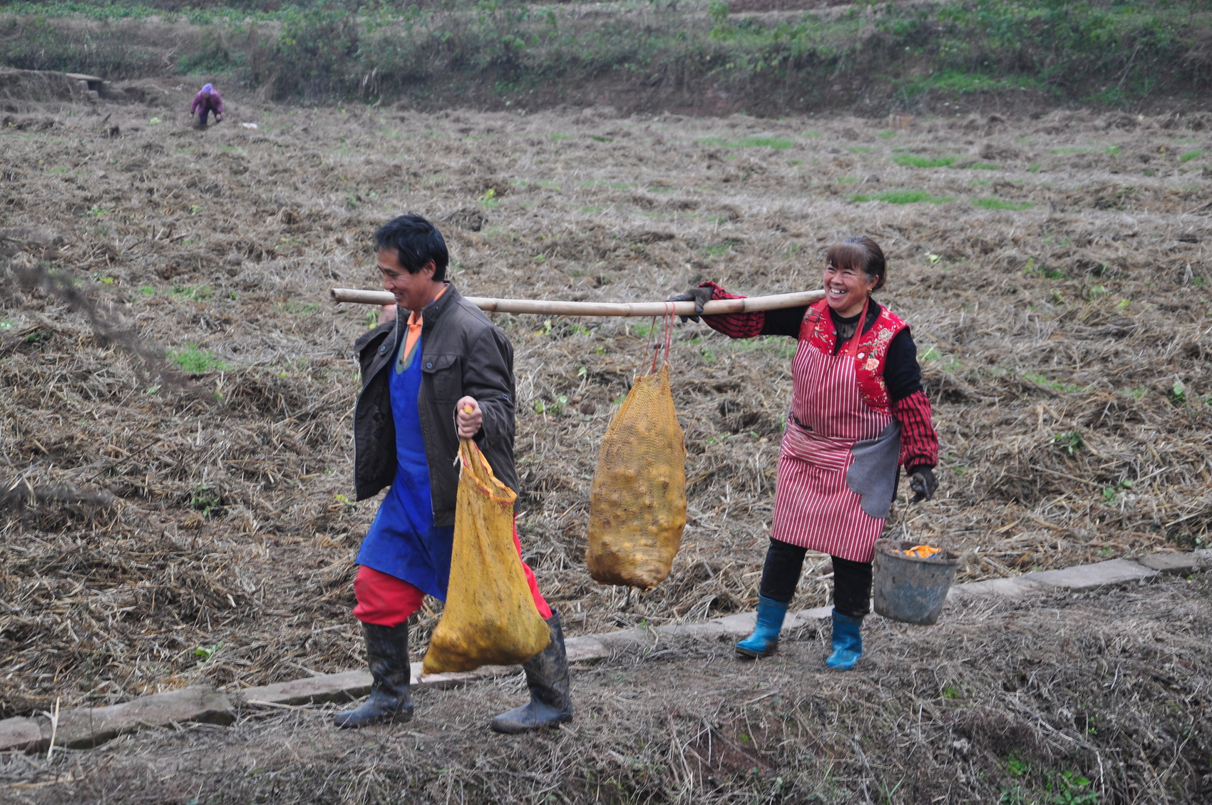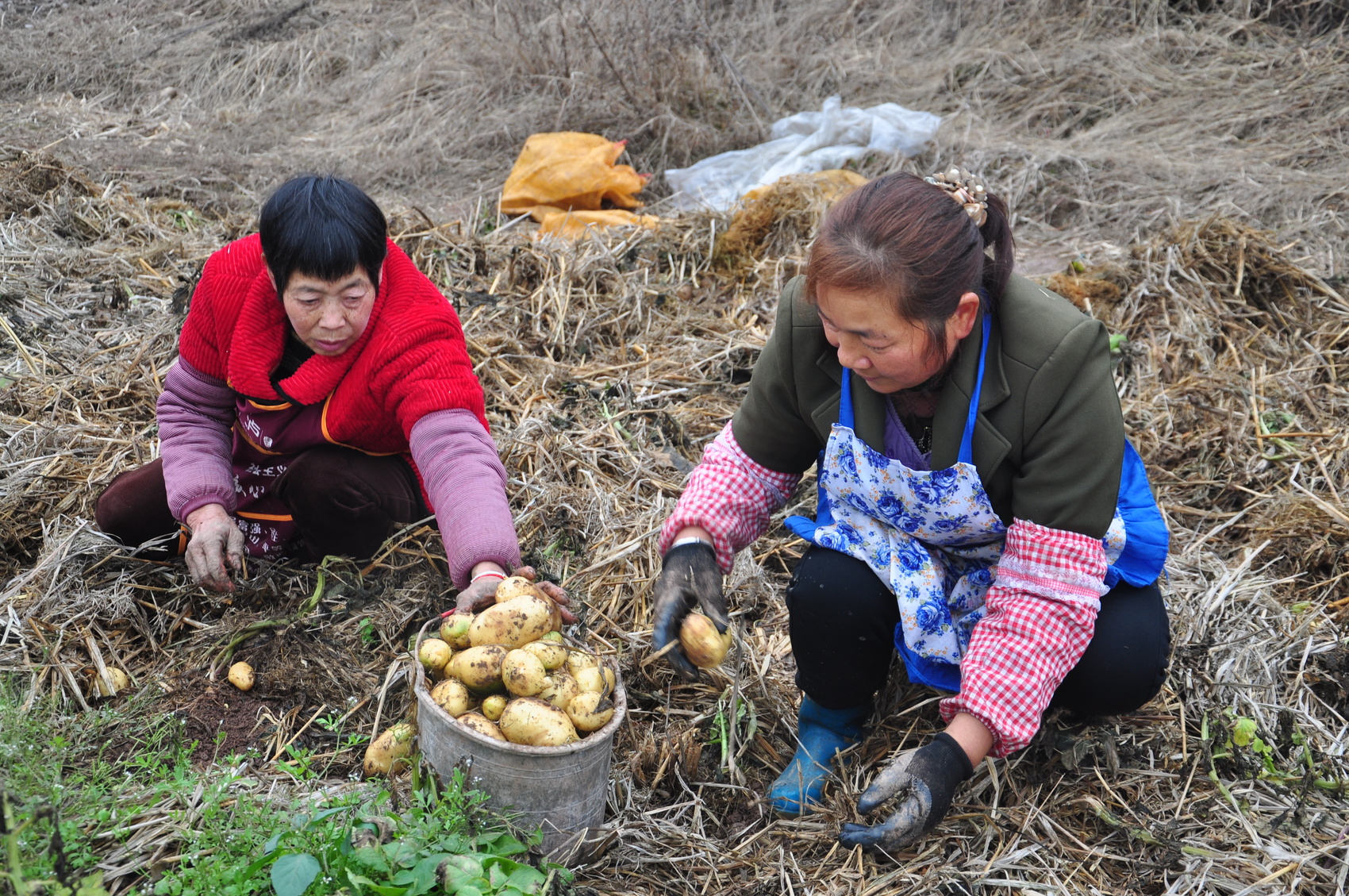 1月3日,泸县立石镇中咀村春雨农机专合社的秋洋芋示范片迎来丰收,数名村民在200亩秋洋芋基地里忙碌着。只见村民们手里拿着镰刀,快速扒开覆盖在土里的草堆,一个个圆乎乎、黄灿灿的秋洋芋便露出了“真面目”。