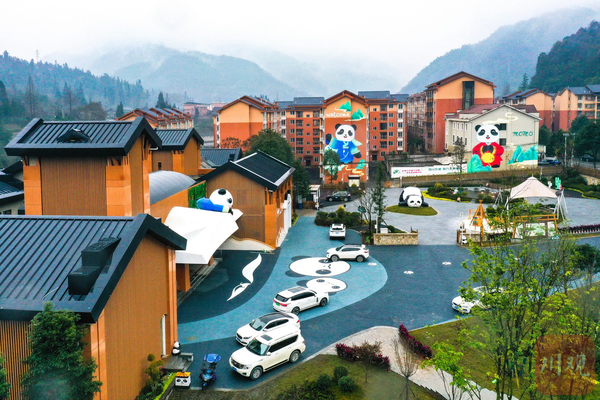 距离大熊猫国家公园核心保护区20多公里,万年村被称为大熊猫国家公园南入口社区门户第一村。去年年初,荥经加快体系重构,大刀阔斧推进大熊猫国家公园入口社区建设,以“大熊猫国家公园+”为发展思路,在这里规划建设“貊貊家园”文旅融合创新示范项目。一年过去,“施工纸”变“实景图”。“貊貊”,这个从《山海经》中找到的关于荥经大熊猫的史料记载,已成为这里独具特色的标识和看点。