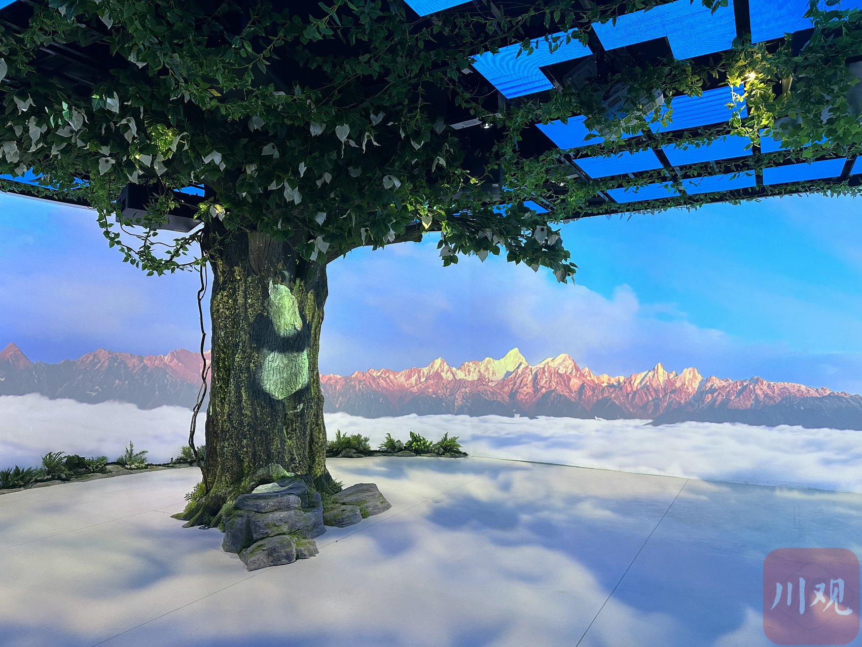 走进貊貊空间,便置身一片云海,大熊猫与鸽子花元素迎面而来,通过剧场式多维沉浸体验,荥经与大熊猫的故事呼之欲出。在“我是巡护员”“保护者之树”等区域,通过科技感满满的互动体验,游客还可以直观了解大熊猫巡护员的日常工作,聆听大熊猫喜怒哀乐的“语言”。