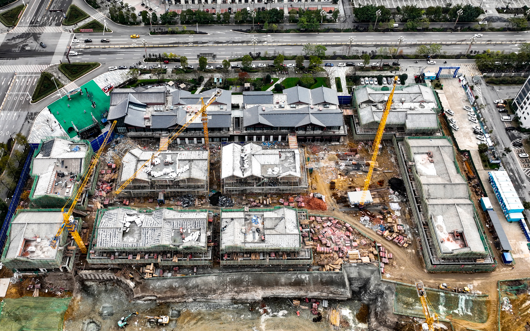 在文旅特色商业街“新街里”项目施工现场,头戴安全帽的工人们正紧张施工作业。该项目相关负责人胡建介绍,“新街里”总投资约12亿元,着力建设为隆昌市规模最大的特色文旅商业项目。截至目前,项目一期完成1号—11号楼封顶,项目二期完成90%土方开挖。项目建成运营后,可实现年销售8亿元,解决就业人数不低于8000人。