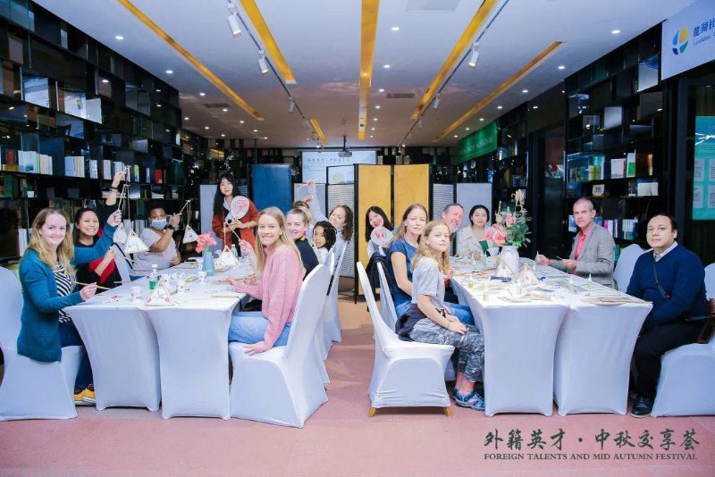 9月26日下午,天空中下起绵绵秋雨,麓湖生态城艺展中心内却热闹非凡,天府新区首届“外籍英才·中秋交享荟”在此举行。新区科创和人才局、国际合作和投服局、天府新区公安分局治安管理支队出入境大队工作人员与新区外籍人才、港澳台人才代表齐聚一堂,共度“川味”中秋节。