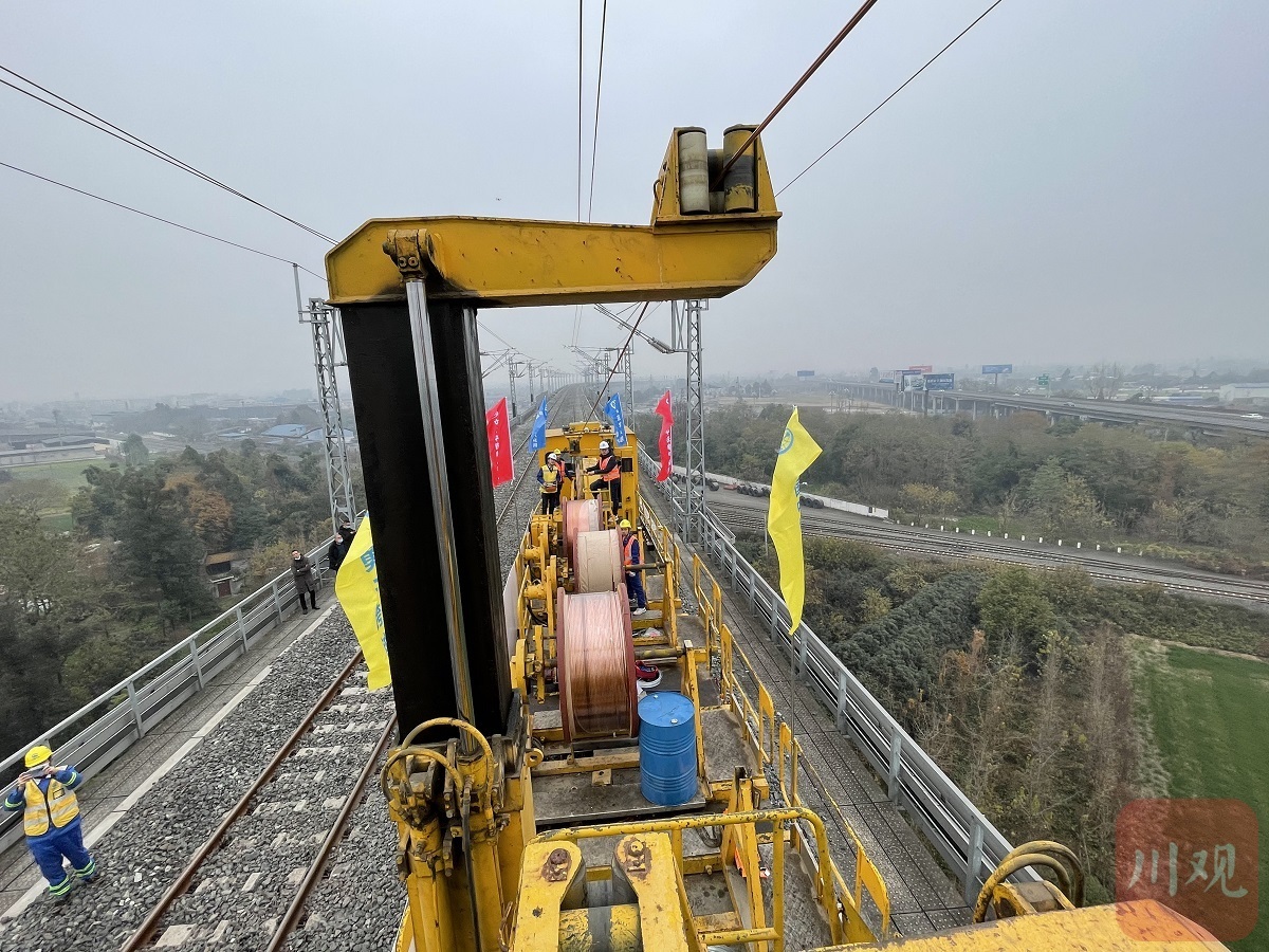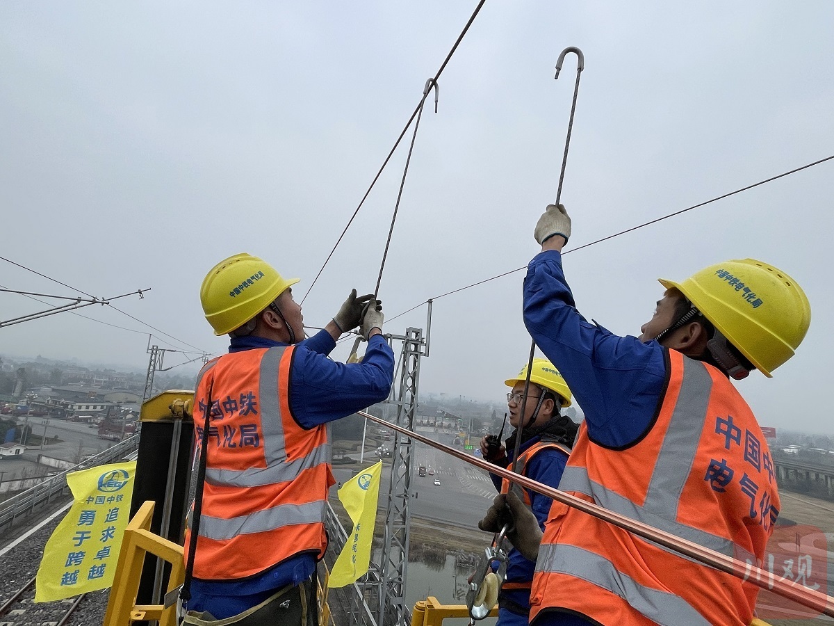 1月8日12时18分,由中铁电气化局集团承建的成都至兰州铁路成都至川主寺(黄胜关)段(以下简称“成兰铁路成川段”)首条接触线成功架设。位于列车上方的接触线是列车的“动脉”,接触线开架,标志着成兰铁路成川段接触网工程进入攻坚阶段,为全线年底建成通车奠定坚实基础。