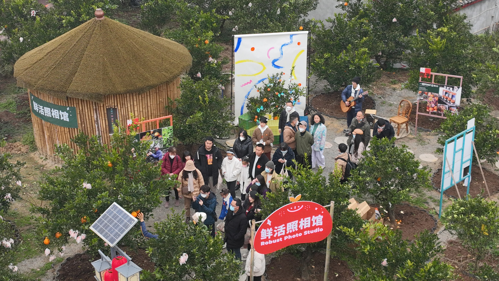 川观新闻记者在铁牛村看到,游客在生态果园里采完耙耙柑后,就在铁牛村品尝特色美食,很多游客还现场体验阿柑果乐园的特色活动:鲜活照相馆、围炉煮茶、小小动物园、手绘星星瓶等。