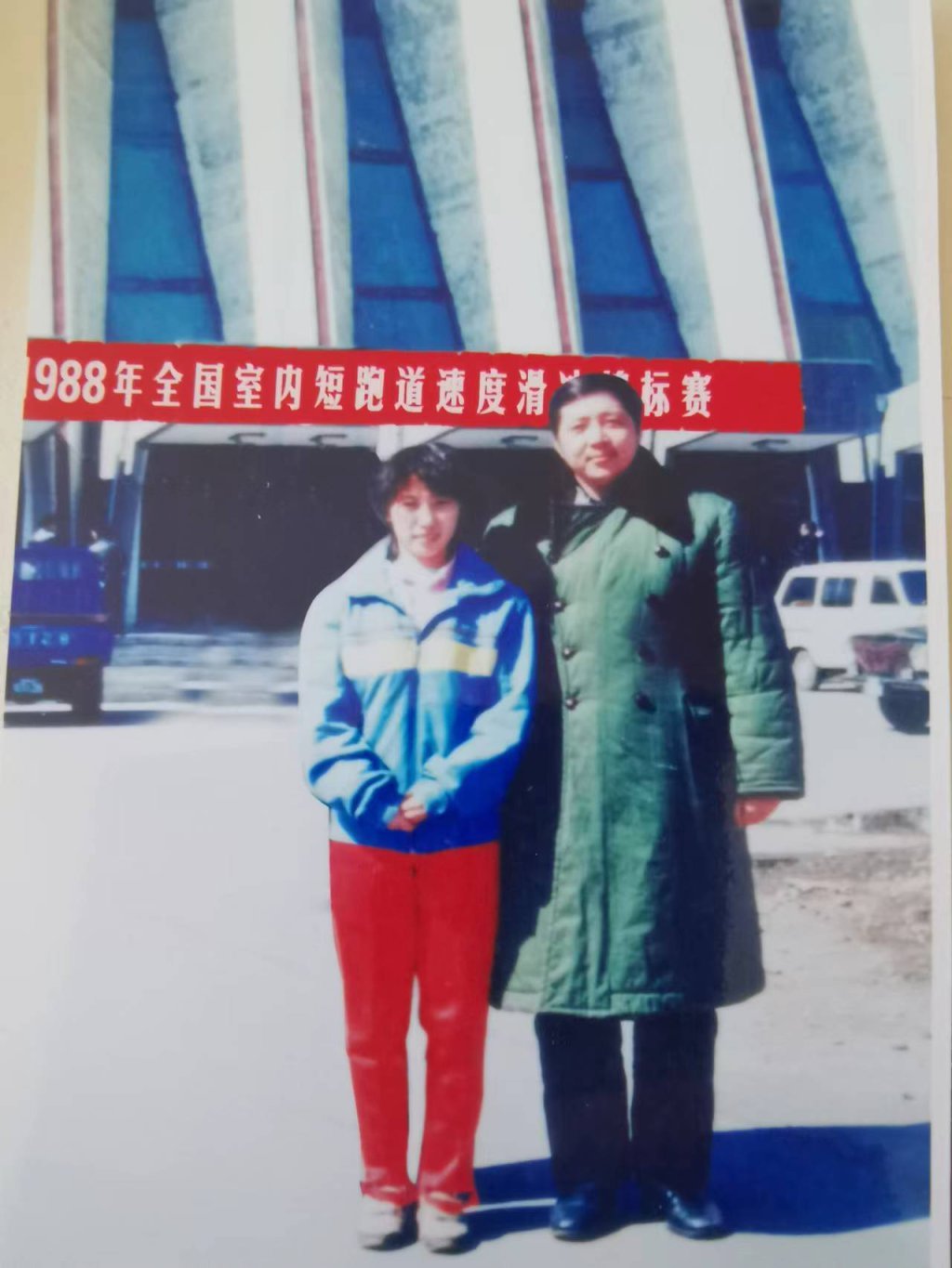 1988年,贺培诚与获得冬奥会银牌的李琰合影。