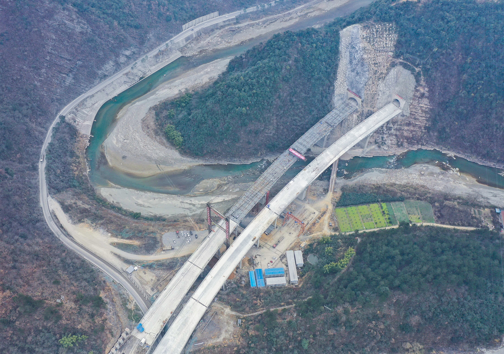 全长约245公里的九绵高速公路起于九寨沟甘川界青龙桥,止于绵阳市游仙区张家坪,总投资超400亿元。全线共打通隧道44座,架设桥梁129座,桥隧比高达83.6%。全线建成通车后,成都至九寨沟的车程将由目前的8个小时缩短至4个小时。九绵高速桂溪大桥位于绵阳市北川县桂溪镇,是九绵高速公路的重要节点,大桥地处平通河裂腹鱼类国家级水产种质资源保护区的核心区内,最大跨度达110米。