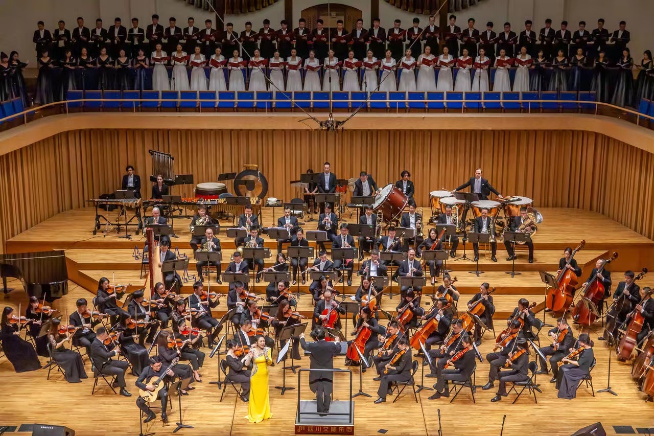 在这场交响合唱音乐会中,我们还听到了巴蜀儿女对巴山蜀水的音画描绘,感受到了巴蜀儿女对巴蜀大地的炽热深情。