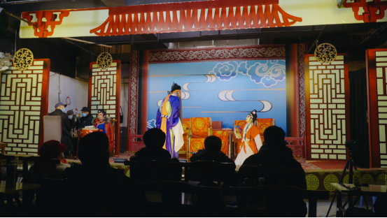 三花的演员们也在戏台上做一些小突破,会结合当下的流行语言做一些小改动,“拜了干爹你要舍财,头上瓜皮帽儿要你买,水果手机你给我整一台。”有的演员还会来两句英文、或者提醒对手戏演员戴上N95口罩,逗得台下哈哈大笑。
