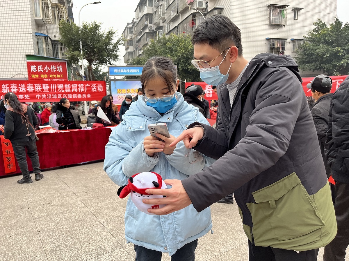 “看四川,观天下。”卫星村6组石娜体等村民拿出手机,在工作人员指导下现场扫码下载川观新闻APP,并订阅相关新闻栏目。在石娜体的手机屏面上,还下载有沿滩融媒等当地多个新闻客户端,看得出,她很爱阅读,关心国家大事。