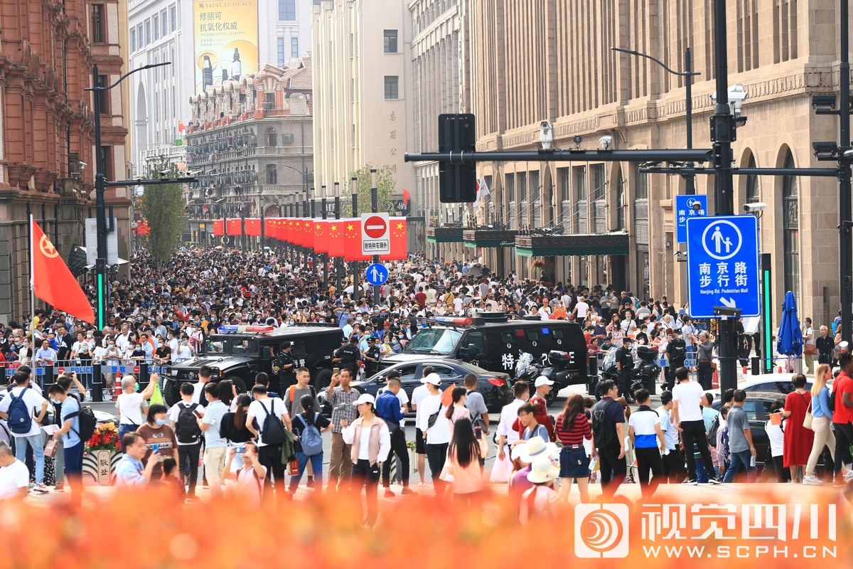 为了守护游客安全,武警上海总队派驻了上千官兵在南京路、外滩、豫园等地值守。记者在现场观察到,灯光秀开始前,从南京路到外滩一线的客流量明显增大,“雨刷式过马路”再现:武警官兵们用身体组成一道“拉链式人墙”,红灯亮时,战士们排成人墙,绿灯时则让开斑马线护送行人过街。