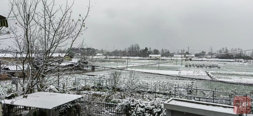 彭州的农田上已有积雪。摄影:关利沙