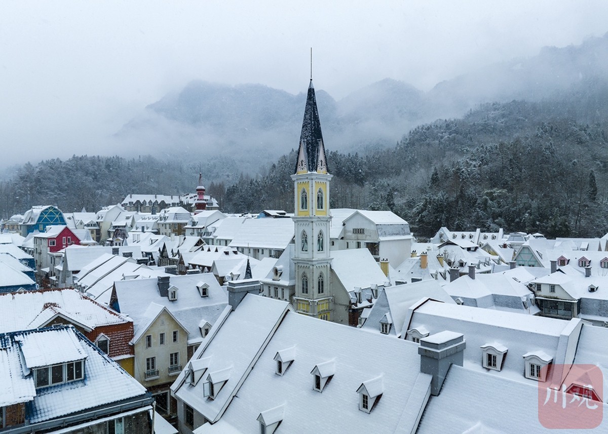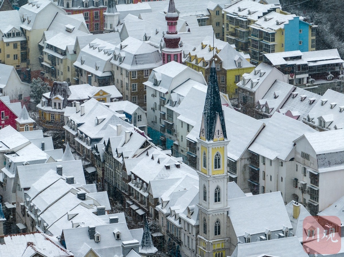 雪中的童话小镇——成都彭州白鹿镇。摄影:张勇