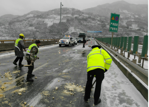 交通执法、高速公路营运公司等单位抢险人员仍然奋战在抗冰雪保畅通一线,确保过往车辆通行安全。