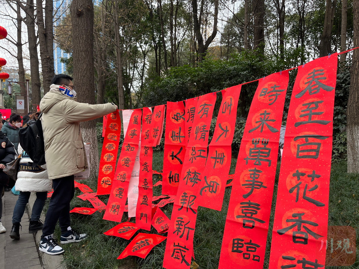 活动吸引了许多游客与家长参与现场互动。在他们看来,在新春佳节来临之际,在人民公园这样具有深厚历史人文气氛的环境中书写、赠送春联,特别有意义,既锻炼了孩子现场书写的能力与勇气,还培养了大家传递快乐的良好习惯,让成都这座“来了就不想离开的城市”,充满了浓浓的中国年味。