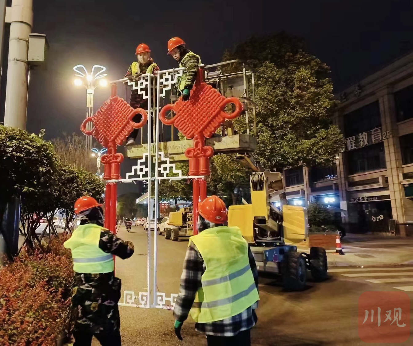1月14日,川观新闻记者从成都市城管委获悉,为喜迎2023年春节到来,成都组织开展春节城市氛围营造工作,在重要路段的城市路灯杆悬挂灯笼、中国结,营造阖家团圆、喜庆祥和的浓厚氛围。