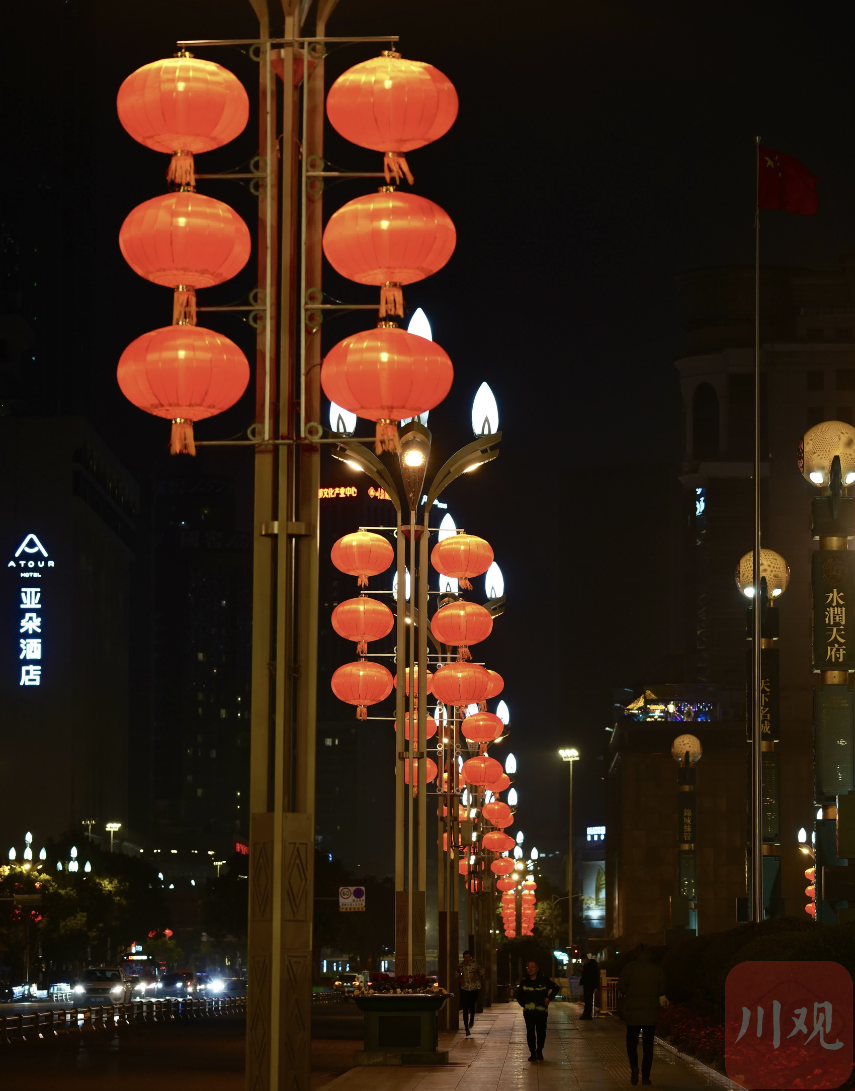 成都市城管委相关负责人介绍,成都其他区(市)县严格按照《2023年春节期间城市氛围营造悬挂灯笼、中国结工作方案》和《路灯杆悬挂灯笼、中国结安装技术导则》,精心组织、精准悬挂,打造公园城市氛围营造示范街区。