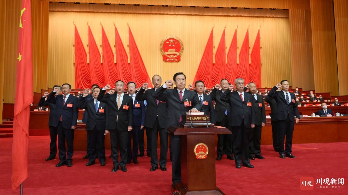1月15日下午举行的四川省第十四届人民代表大会第一次会议第三次全体会议,举行了宪法宣誓仪式。