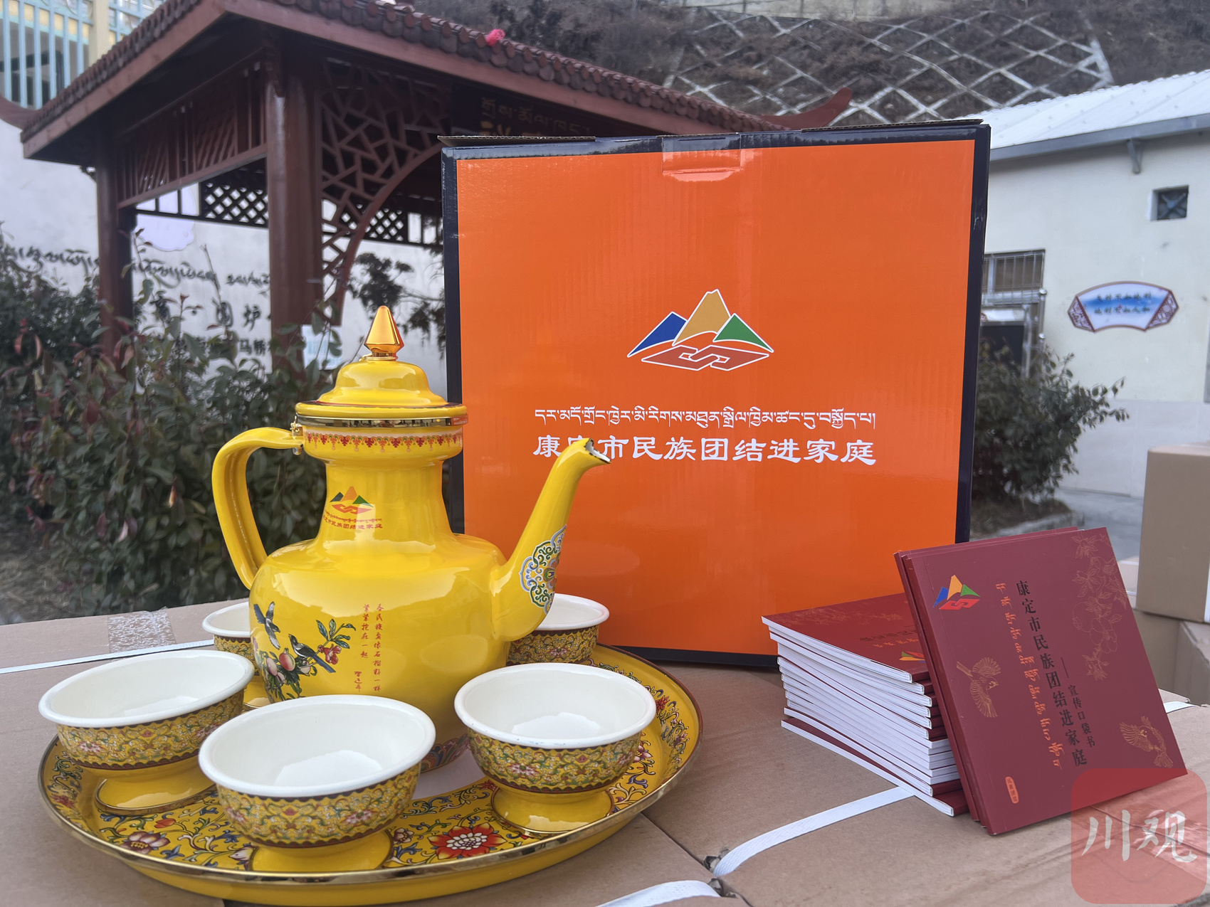 现场,联谊干部介绍:“慰问品是一套藏式酥油茶具,将送给全市的民族团结联谊家庭,慰问品还包括民族团结进家庭的宣传口袋书。”