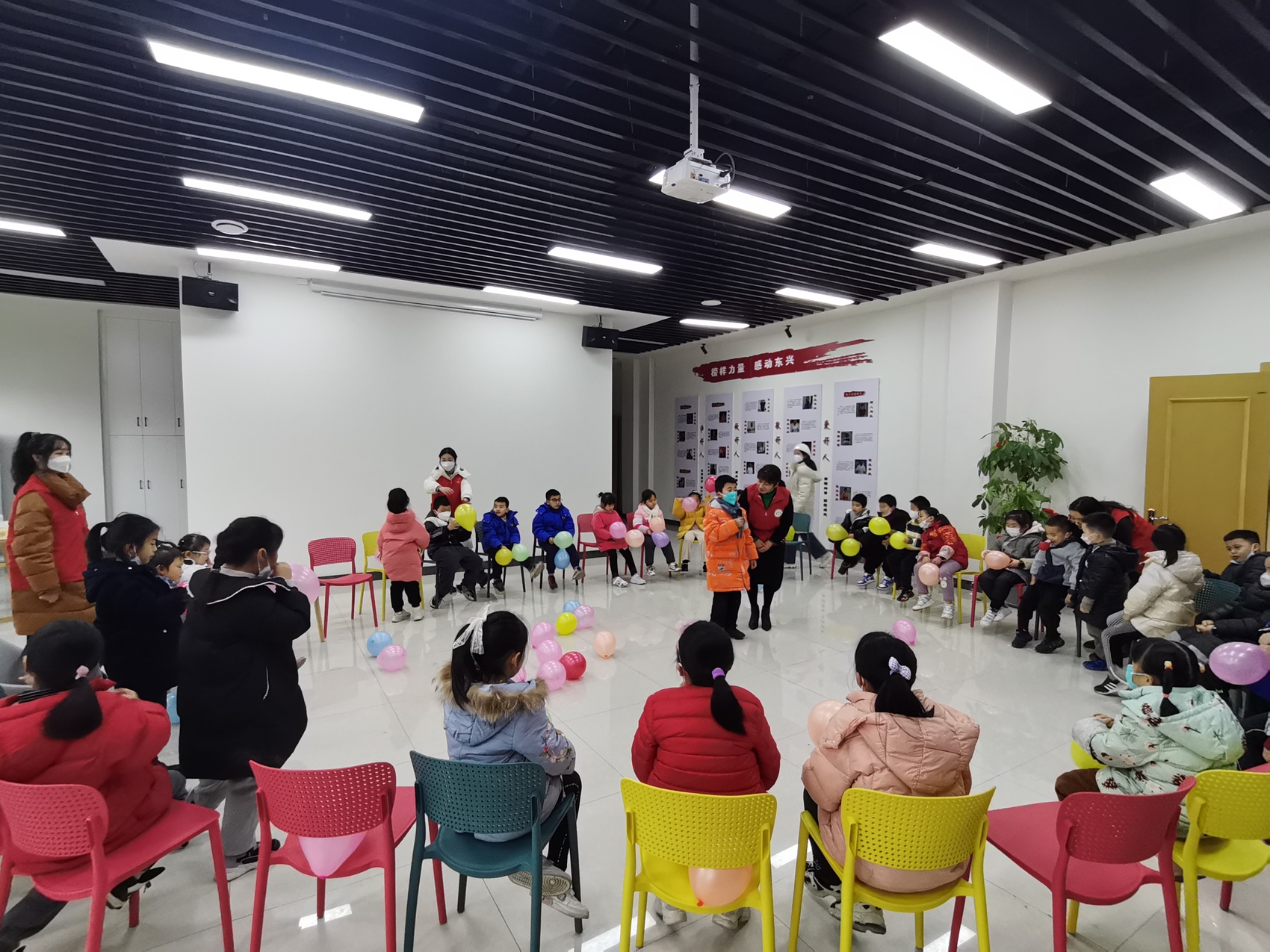“1,2,3,大家跟着节拍一起跳起来。”1月16日,在内江市东兴区新时代文明实践中心,30名医务人员的孩子在大学生志愿者的陪伴下开心地玩着游戏。